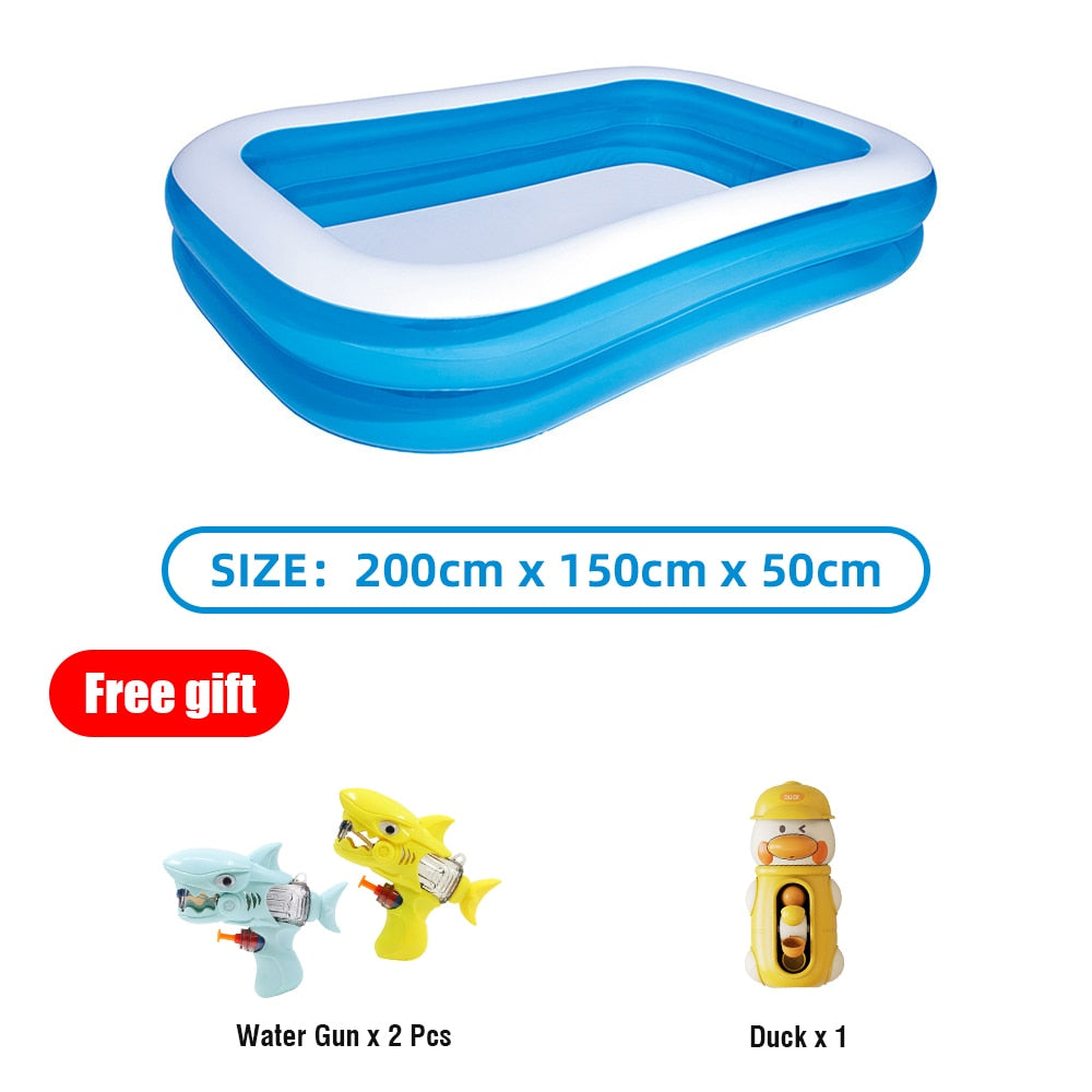 Het 2/3M grote rechthoekige opblaasbare zwembad is perfect voor families die op zoek zijn naar een verfrissende en leuke zwemervaring in de achtertuin. Dit zwembad biedt voldoende ruimte voor kinderen om te spelen en te zwemmen, terwijl volwassenen ook comfortabel kunnen ontspannen.