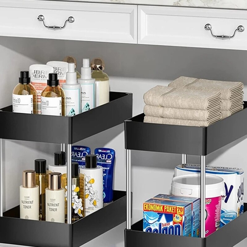 De 2-laags Opbergorganizer voor Onder de Gootsteen is een veelzijdig rek dat perfect is voor het organiseren van je badkamer- of keukenruimte. Dit multifunctionele rek is ontworpen om optimaal gebruik te maken van de beschikbare ruimte onder de gootsteen.