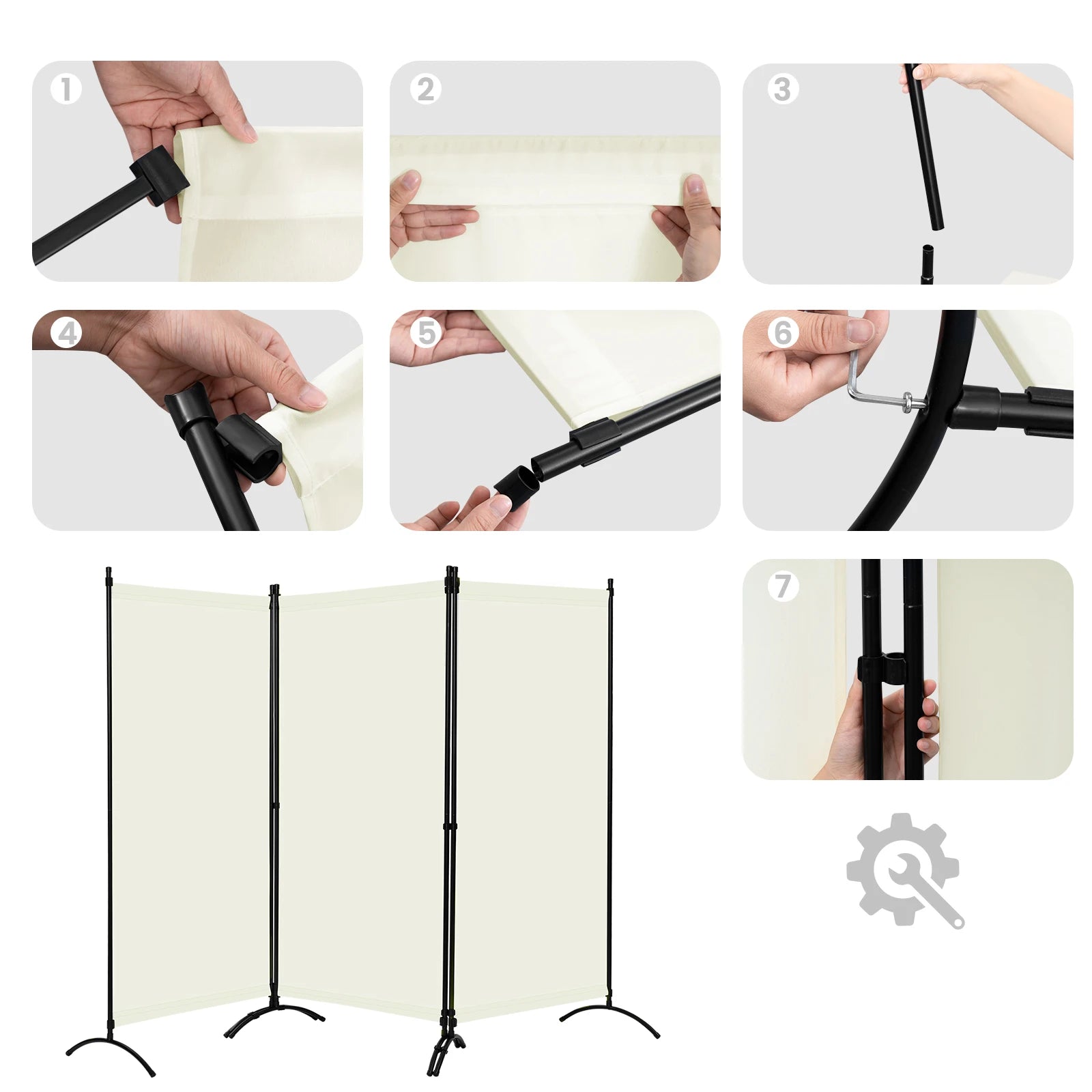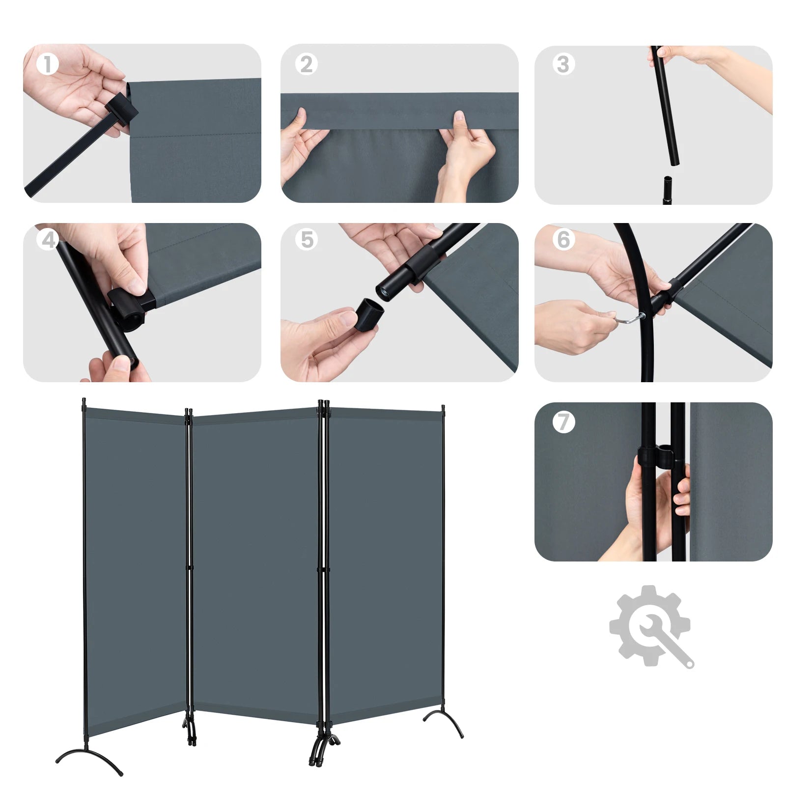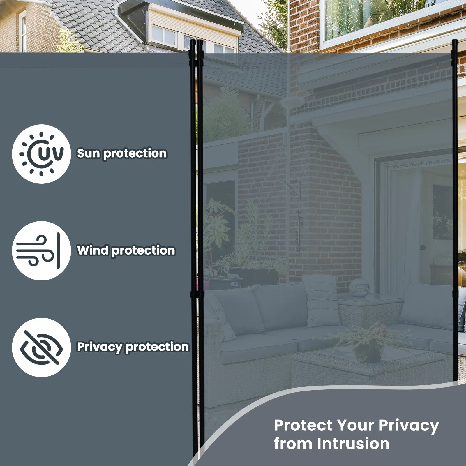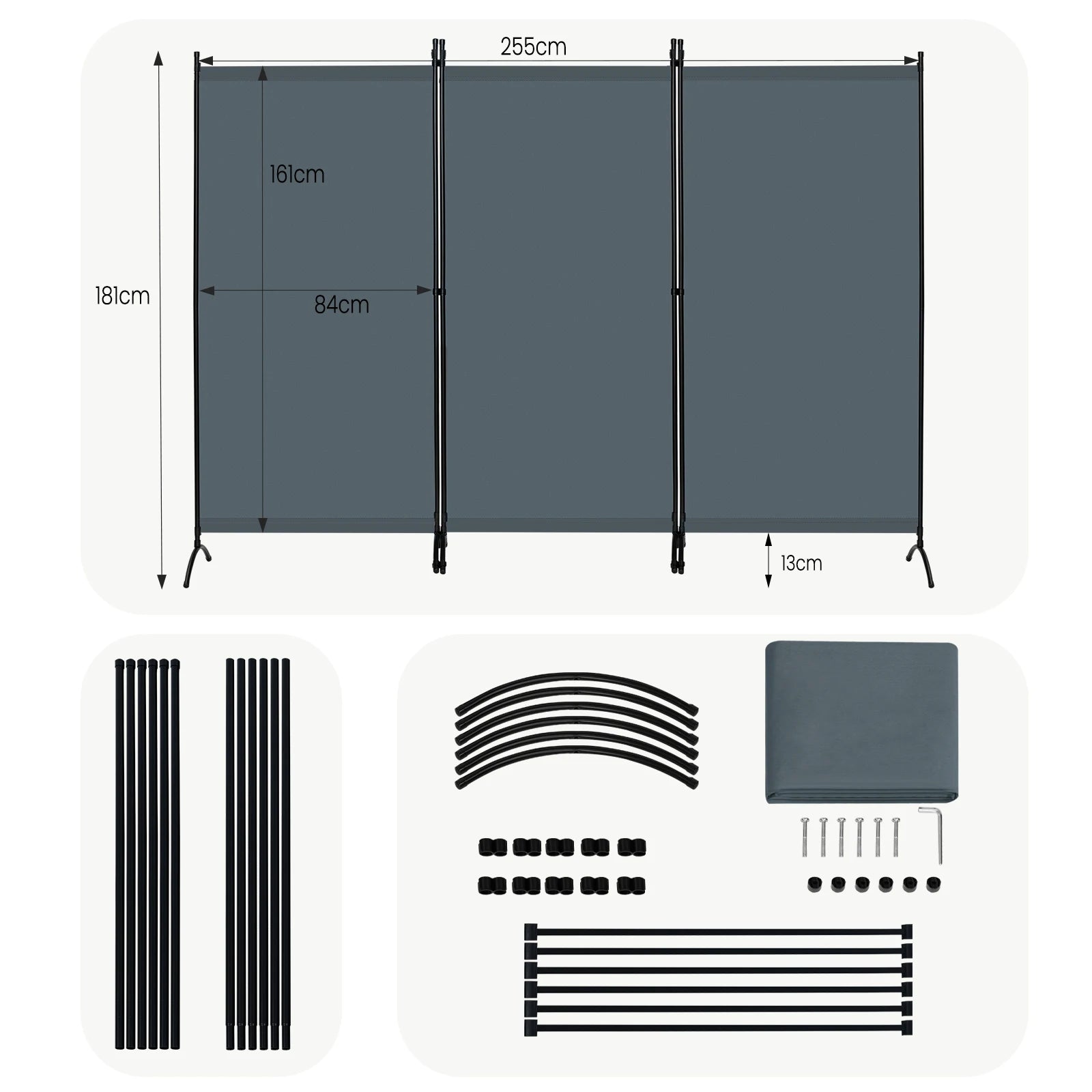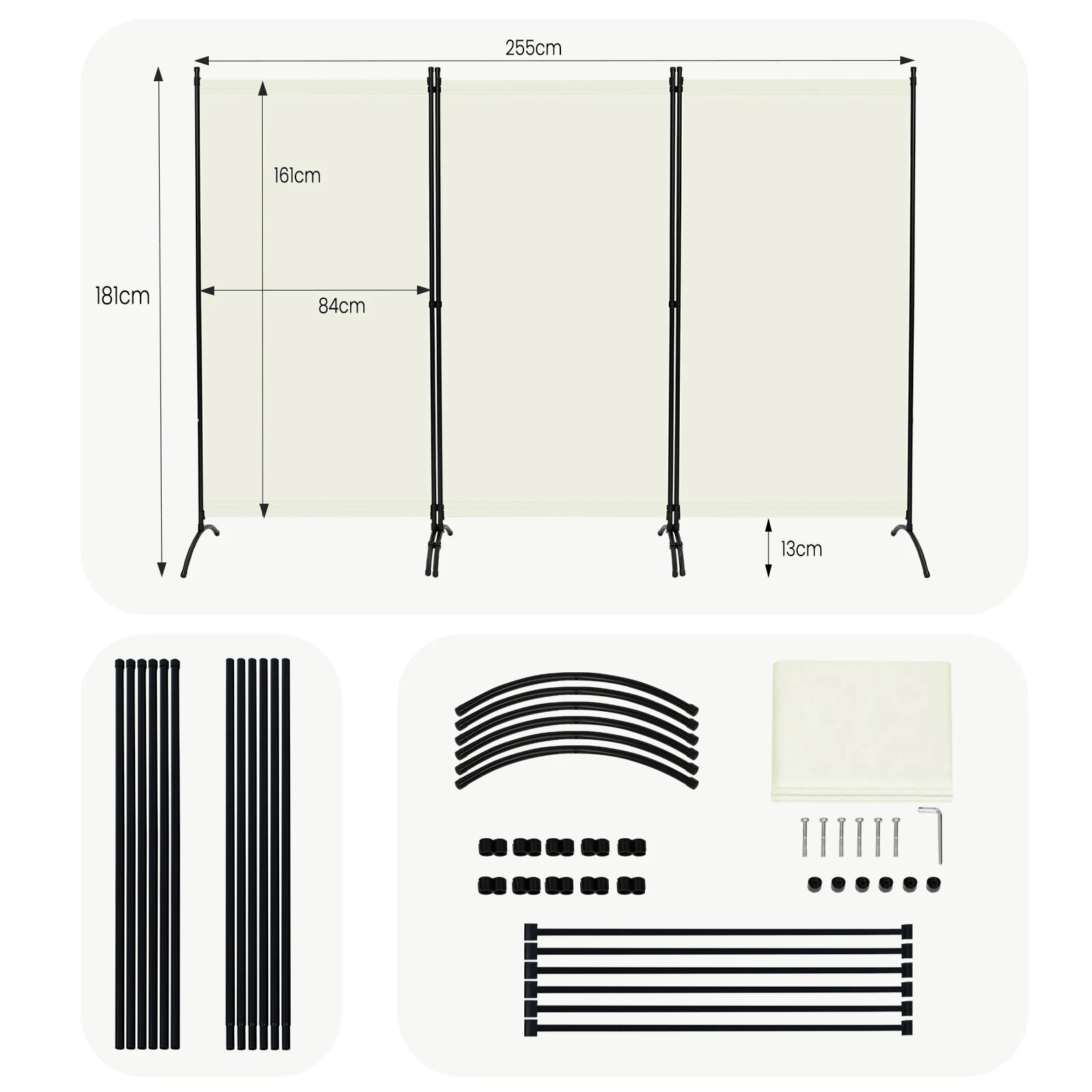 Creëer privacy en stijl in elke ruimte met dit 3-delige vrijstaande kamerscherm van 255x182 cm! Dit opvouwbare en multifunctionele scheidingsscherm is perfect voor zowel binnen- als buitengebruik. Ideaal voor het balkon, terras, tuin of als stijlvolle ruimteverdeler in huis.