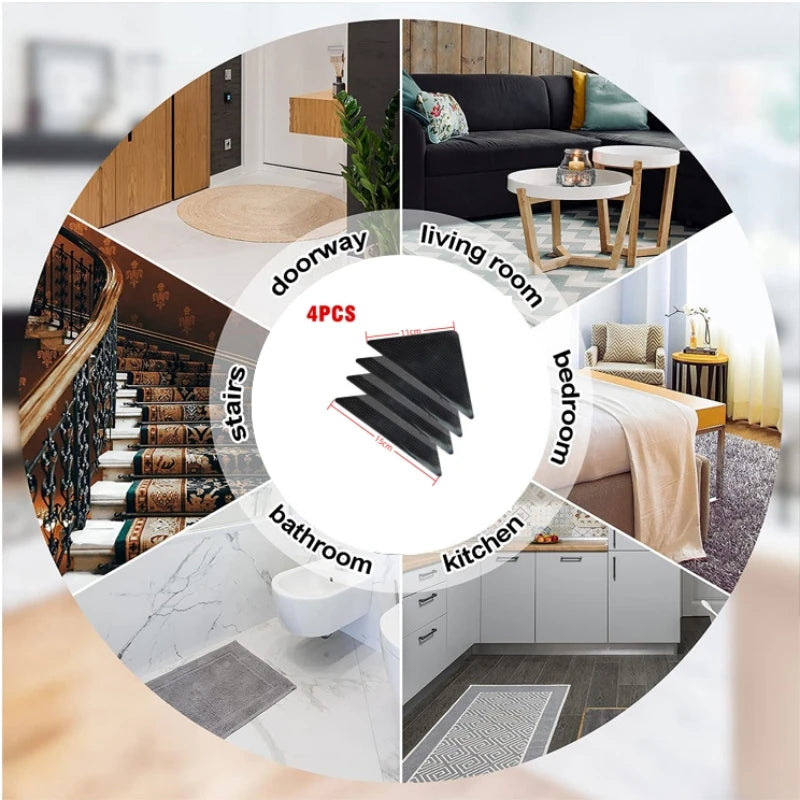 Voorkom uitglijden en houd tapijten stevig op hun plaats met deze zelfklevende antislip stickers. Het pakket bevat 4 of 8 stuks stickers, afhankelijk van je keuze. Deze stickers zijn perfect voor het bevestigen van tapijten en vloermatten en zijn eenvoudig te gebruiken. De rechthoekige L-vorm zorgt voor een stevige grip op elke hoek van het tapijt, waardoor het veilig blijft liggen. Voorkom ongelukken en maak je huis veiliger met deze handige tapijtgrepen.