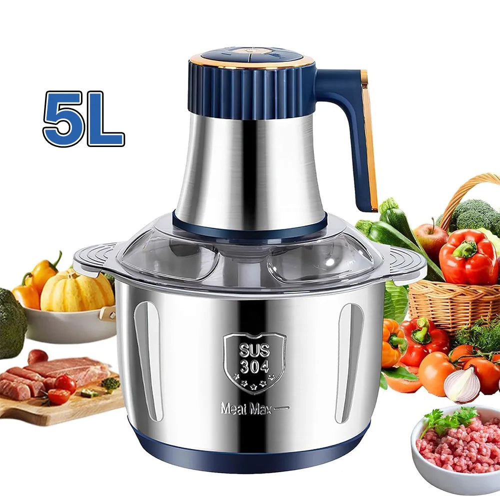 Deze krachtige 5L elektrische vleesmolen is de ideale keukenhulp voor het snel en efficiënt malen van vlees, groenten en andere ingrediënten. Met 6 roestvrijstalen messen biedt deze multifunctionele snijder en processor een uitstekende snijkwaliteit. Het apparaat is eenvoudig in gebruik, schoon te maken en perfect voor dagelijks gebruik in de keuken. Dankzij de grote capaciteit van 5 liter kun je grotere hoeveelheden bereiden, ideaal voor gezinnen en kookliefhebbers. Of je nu vlees wilt hakken, groente wilt snijden of ingrediënten wilt mengen, deze veelzijdige chopper is de perfecte keuze. Geschikt voor gebruik in diverse kookapplicaties, van maaltijden tot snacks.