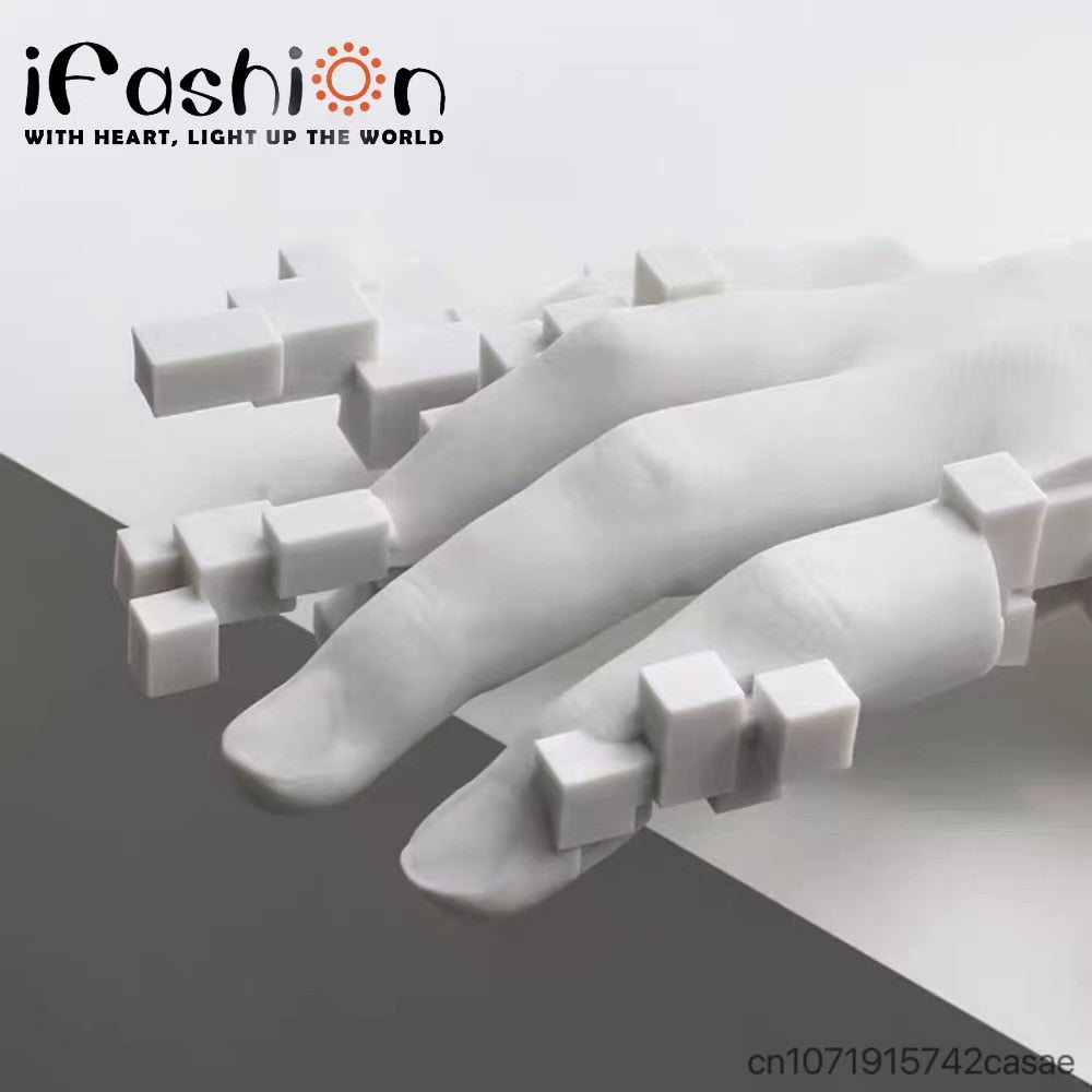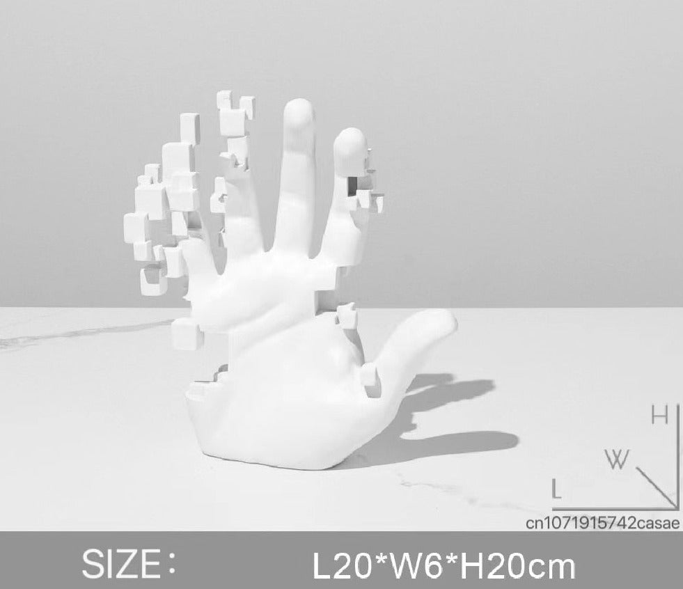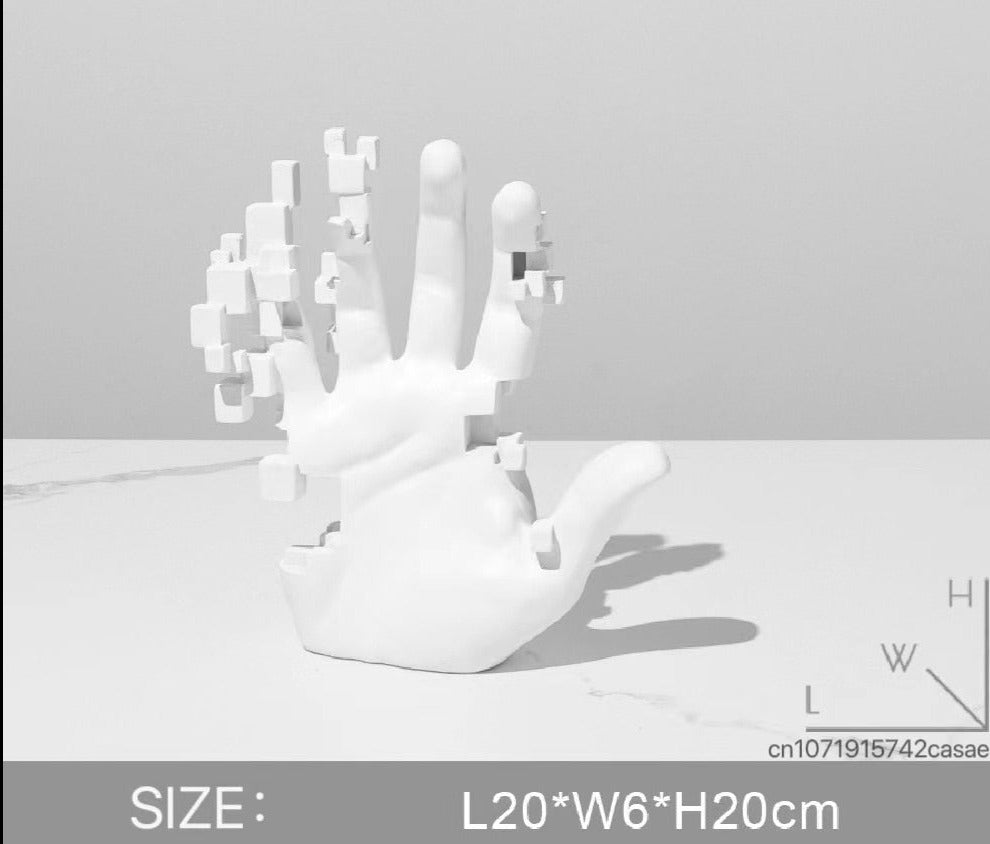 Dit verfijnde sculptuur is zorgvuldig vervaardigd om een gevoel van kunstzinnigheid en minimalisme over te brengen. Het beeld toont een hand in een intrigerende abstracte vorm, wat ruimte laat voor interpretatie en betekenis. Plaats het op een boekenplank, tafel, of een andere opvallende plek in je kamer om een gespreksonderwerp en een visueel aantrekkelijk accent toe te voegen.