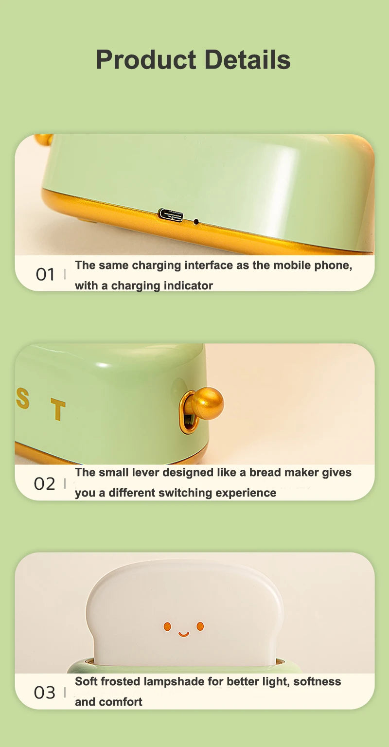 Voeg een speelse en schattige Touch toe aan je kamer met dit Brood Toast LED Nachtlampje! Dit schattige lampje, geïnspireerd op een toastbroodje, is perfect voor een gezellige sfeer in je slaapkamer, woonkamer of kinderkamer. Het lampje heeft een zachte Ledverlichting die je in de nacht verlicht zonder te fel te zijn, ideaal als nachtlampje of sfeerverlichting. Dankzij de ingebouwde timerfunctie schakelt het lampje automatisch uit na een bepaalde tijd, wat het energiezuinig en handig maakt. Het draagbare ontwerp maakt het gemakkelijk om het lampje overal mee naartoe te nemen. Een leuke en functionele decoratie voor elke ruimte!