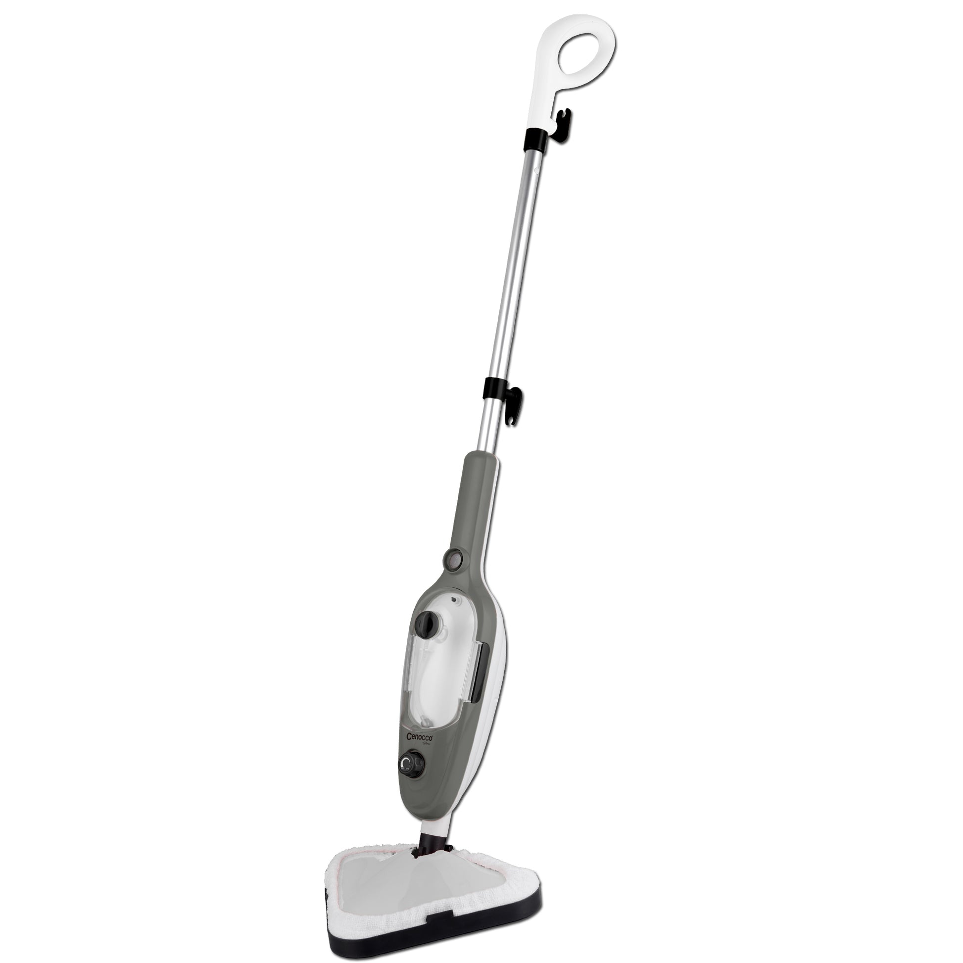 De geweldige oplossing voor uw dagelijkse schoonmaaktaak. Gemakkelijk te gebruiken, efficiënt en handig. Introductie van de Cenocco CC-9074 is een 8-in-1 stoommop-reiniger, aangedreven door een motor van 1300 W, die elk oppervlak reinigt en 99,9 procent van de ziektekiemen en bacteriën elimineert zonder gebruik te maken van schadelijke chemicaliën en een frisse en schone kamer en oppervlak achterlaat met de kracht van stoom. De zachte pads zijn gemaakt van een microvezelstof die elke harde vloer voorzichtig reinigt en gemakkelijk plakkerig vuil verwijdert. Met de variabele stoomdraaiknop kunt u kiezen uit hoge, gemiddelde of lage stoom, oplopend of aflopend, afhankelijk van uw reinigingsbehoeften. Het handvat is ergonomisch ontworpen en dankzij het lichtgewicht apparaat kunt u schoonmaken zonder uw spieren te belasten. Dankzij de draaibare besturing navigeer je naar een harde hoek, om meubels heen en langs plinten. Deze stoommop-reiniger kan samen met de opzetstukken worden omgezet in een handreiniging en zorgt voor veelzijdigere reinigingsopties. De eenvoudig te vullen schoonwatertank heeft een capaciteit van 450 ml voor eenvoudig bijvullen en water- of oplossingscapaciteit.