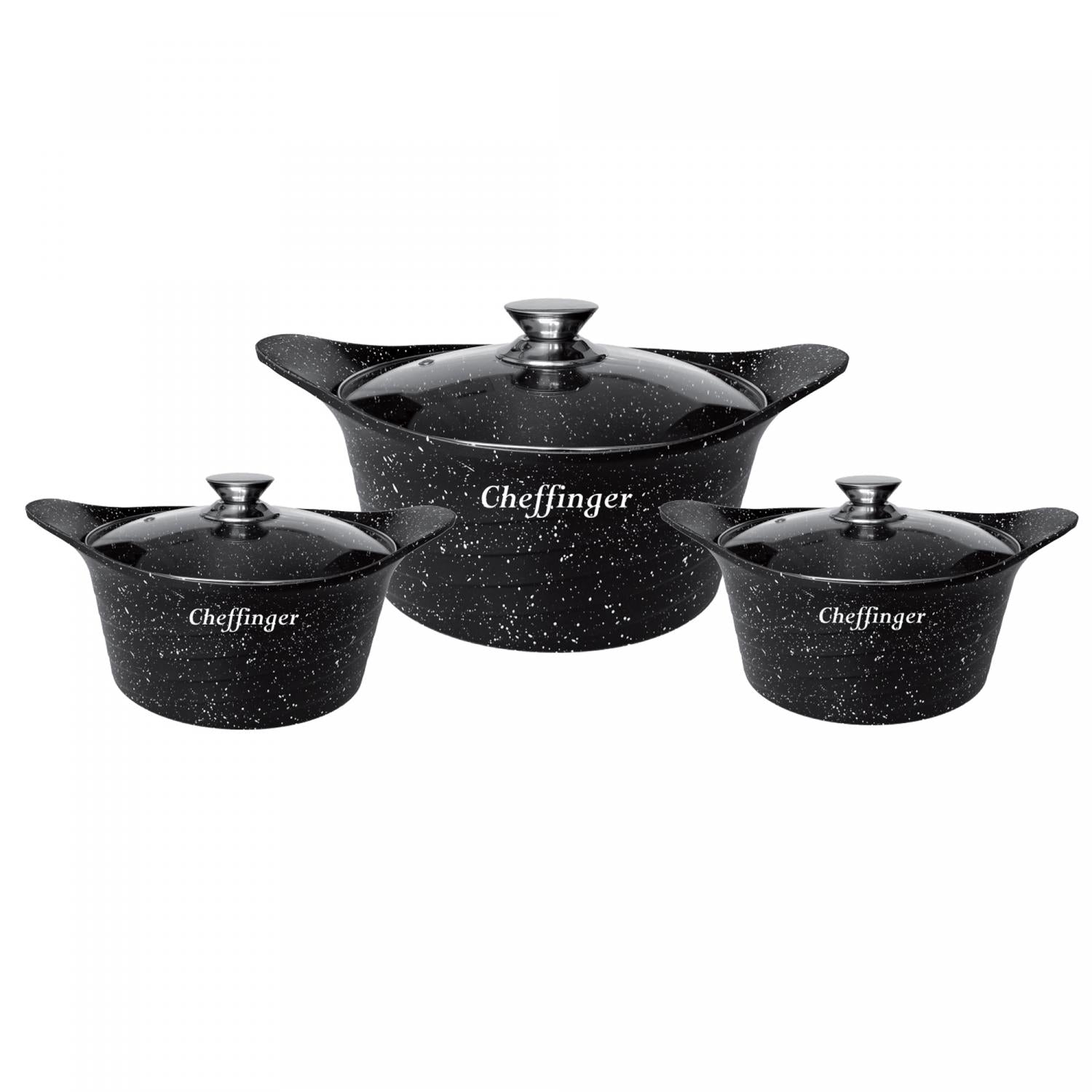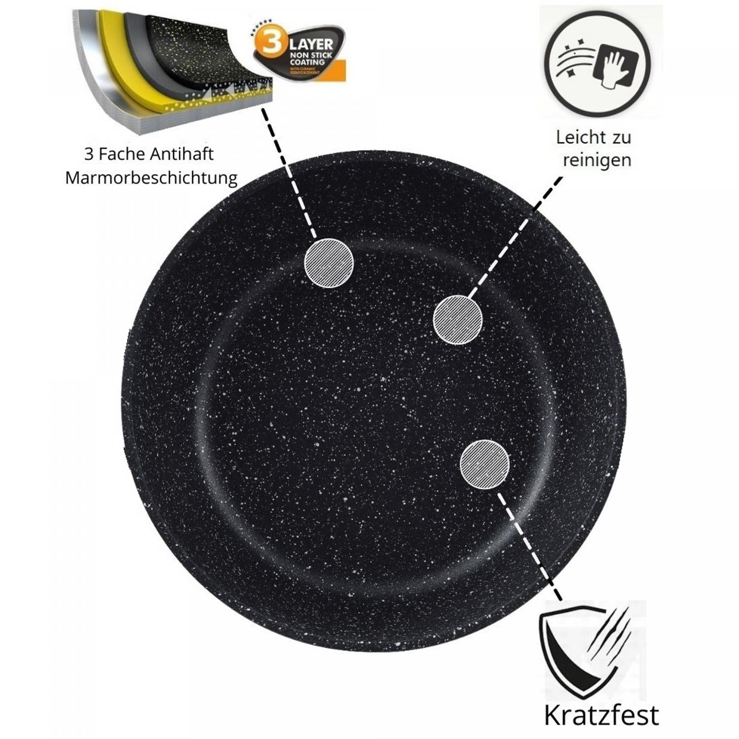 - De potten zijn gemaakt van gegoten aluminium en hebben een 3-laags marmeren coating.