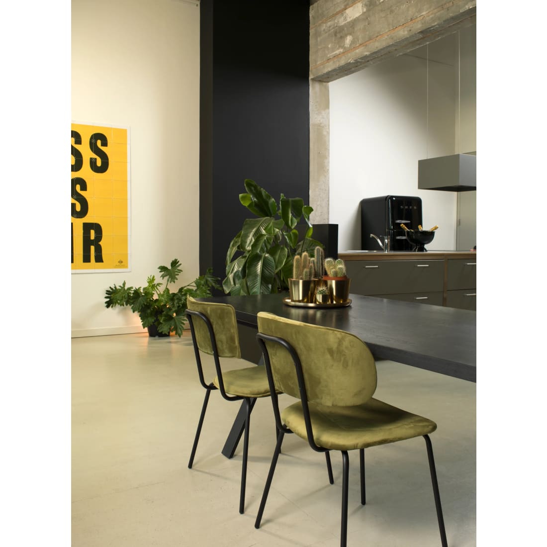 Comfortabel en stijlvol: dat is de eetkamerstoel Bo. De zitting en rug zijn uitgevoerd in een duurzame, oersterke stoffering en het frame is zwart gepoederd coat staal. En heel handig, je schuift 'm na het eten weer gemakkelijk onder de tafel. Neem plaats! Royale eetkamerstoel van H 81 x B 38 x ZD 38 cm Comfortabel tafelen dankzij de brede zitting Staat stevig op zijn stalen onderstel Met kunststof beschermdopjes tegen krassen op de vloer, fijn! Handig! stapelbaar tot 5 stuks Standaard met 2 jaar garantie Tip: combineer met andere stoelen aan de eettafel Earth stoffering Velvet stof, gemaakt van oude petflessen Deze zachte stoffering is zeer slijtvast en duurzaam.