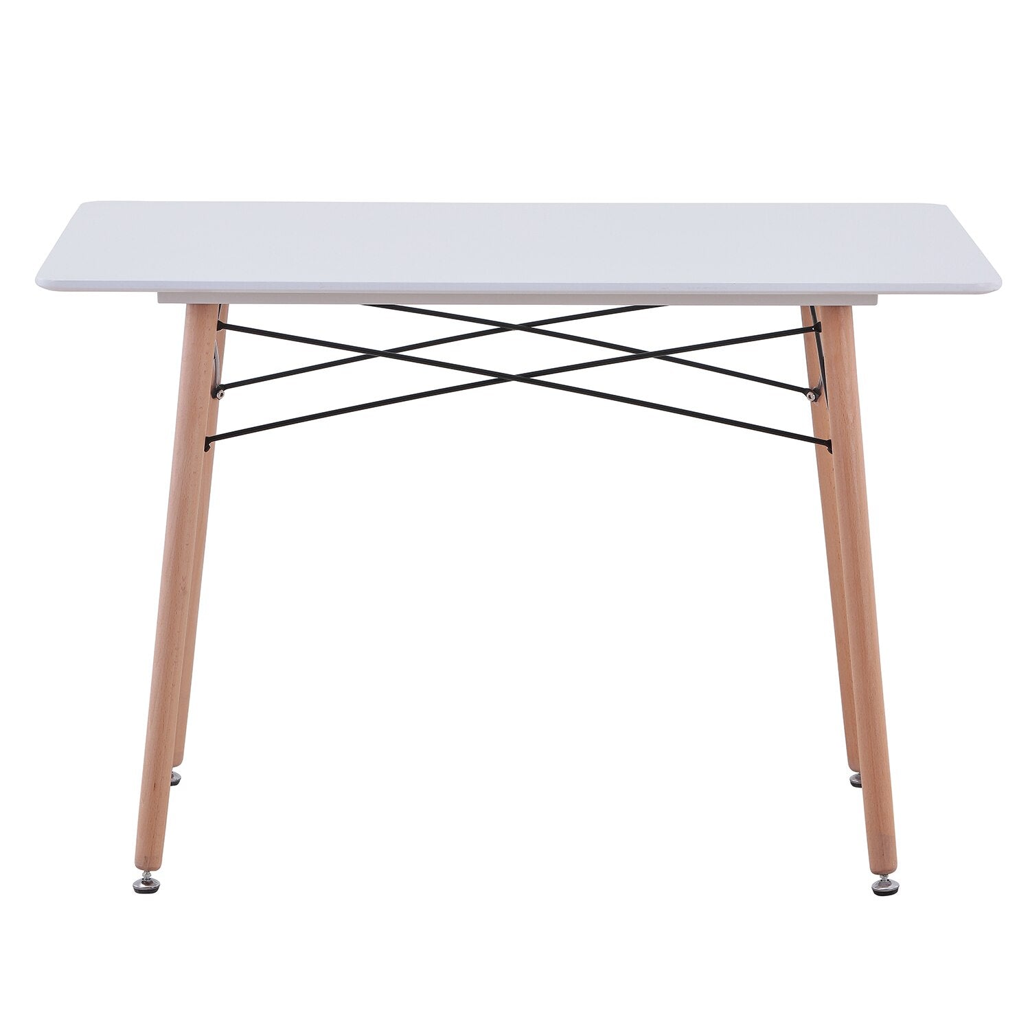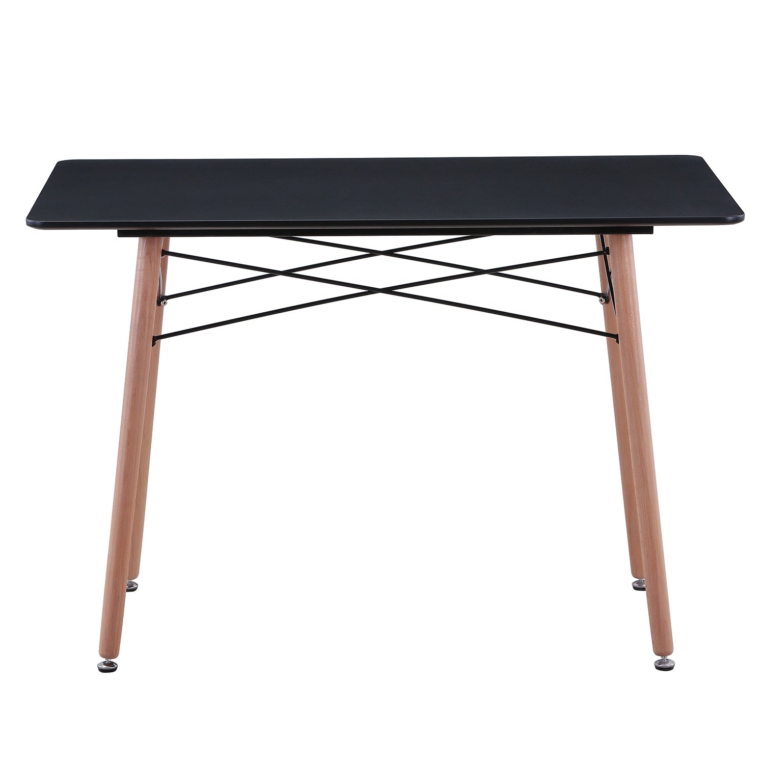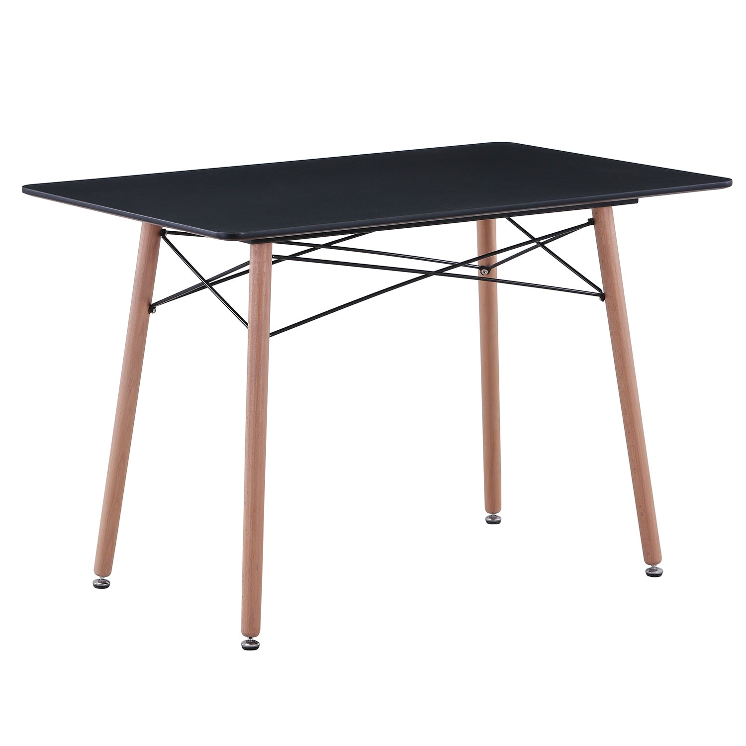 De rechthoekige vorm van de tafel biedt voldoende ruimte om comfortabel te kunnen eten, werken of ontspannen. Met afmetingen van 110x70x74cm is de tafel compact en past hij goed in kleinere ruimtes. De stevige houten poten zorgen voor stabiliteit en duurzaamheid, waardoor de tafel lang meegaat.