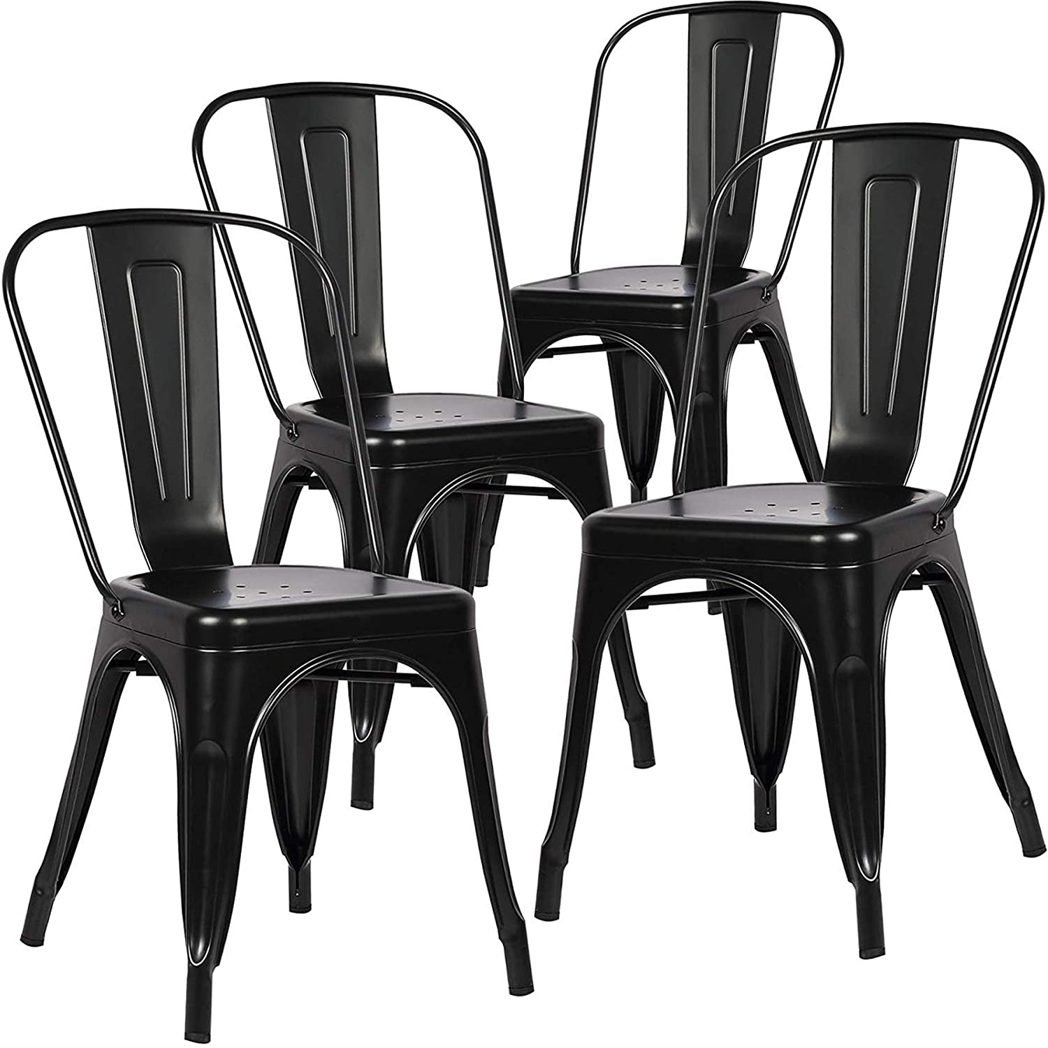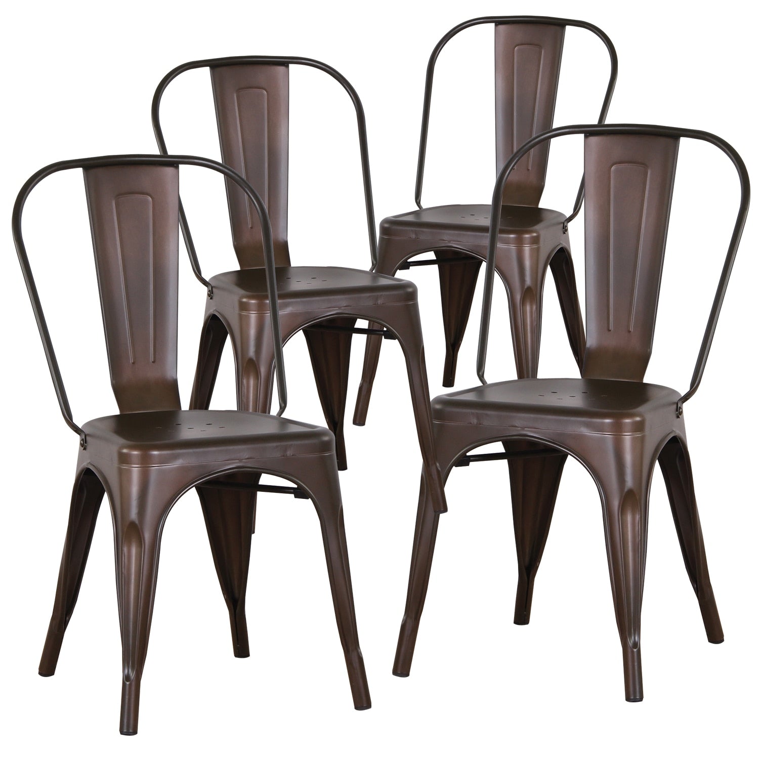 Deze set van 4 metalen eetkamerstoelen in industriële stijl van EGOONM biedt een combinatie van functionaliteit en stijl. Deze stoelen zijn perfect geschikt voor gebruik in restaurants, op terrassen, als buitenmeubilair of gewoon als eetkamerstoelen.