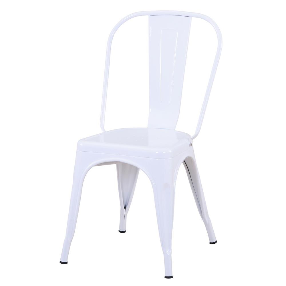 De stoelen zijn gemaakt van duurzaam metaal en zijn ontworpen in een stoere industriële stijl. Ze bieden niet alleen comfortabele zitplaatsen, maar zijn ook stapelbaar, wat handig is bij het opbergen of wanneer je extra ruimte nodig hebt.