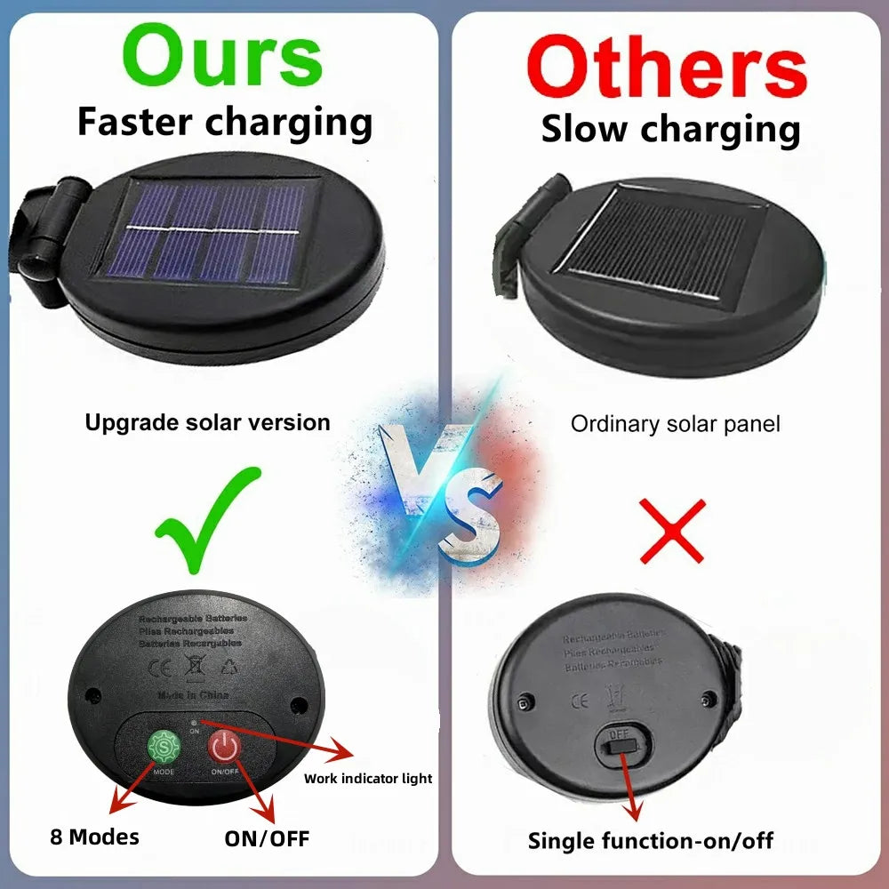 Zonne-energie: Het zal overdag automatisch worden uitgeschakeld om op te laden en automatisch verlichten wanneer het donker wordt. Het is volledig op zonne-energie, zonder draden of externe stroombronnen, zodat energie wordt bespaard.