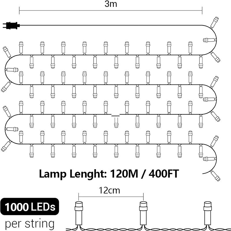 Verlicht je huis met betoverende pracht tijdens de feestdagen met onze 120 meter lange, 1000 LED's Kerstverlichtingsslinger. Deze feestelijke lichtslinger is perfect om je huis te transformeren en een warme sfeer te creëren voor Kerstmis en Nieuwjaarsfeesten.