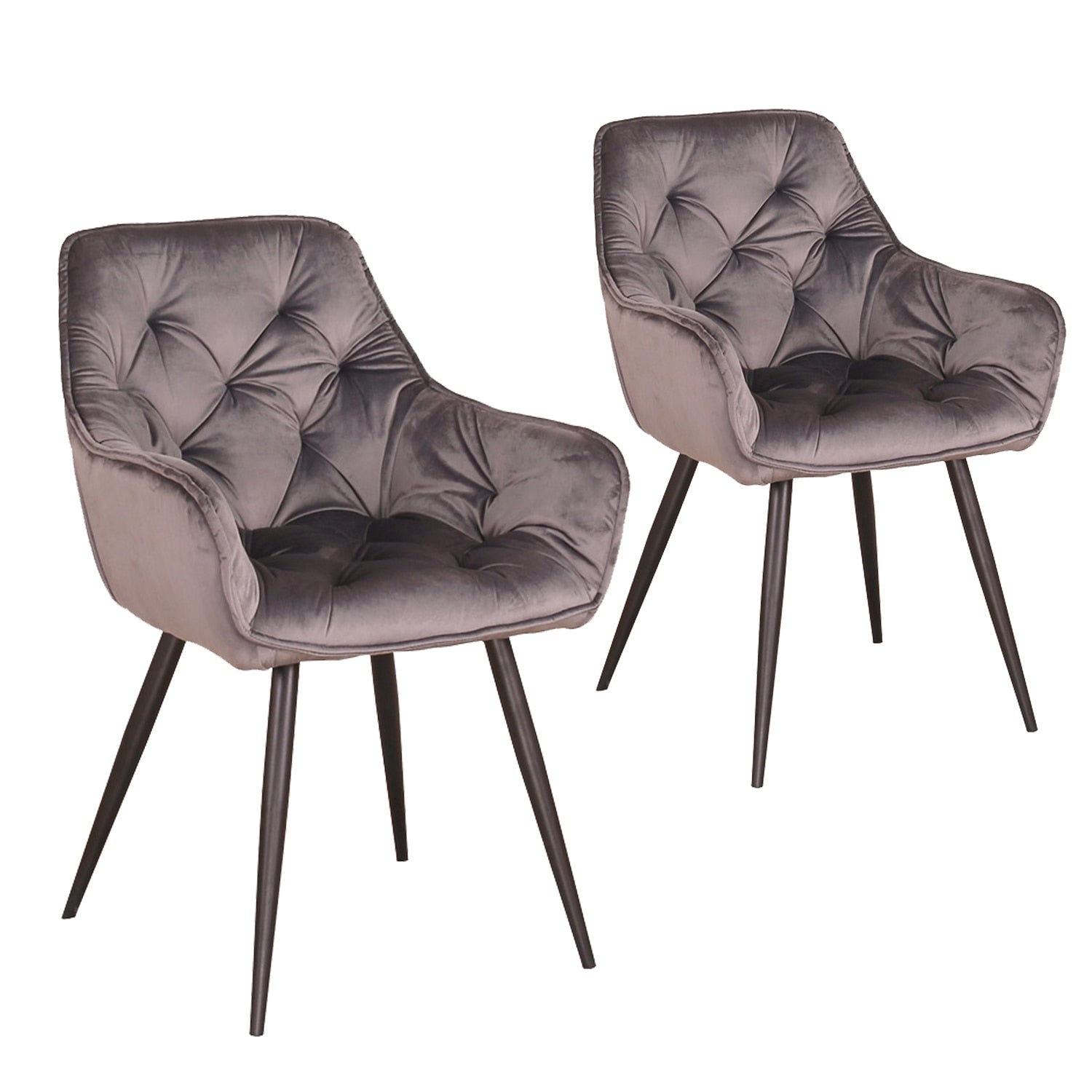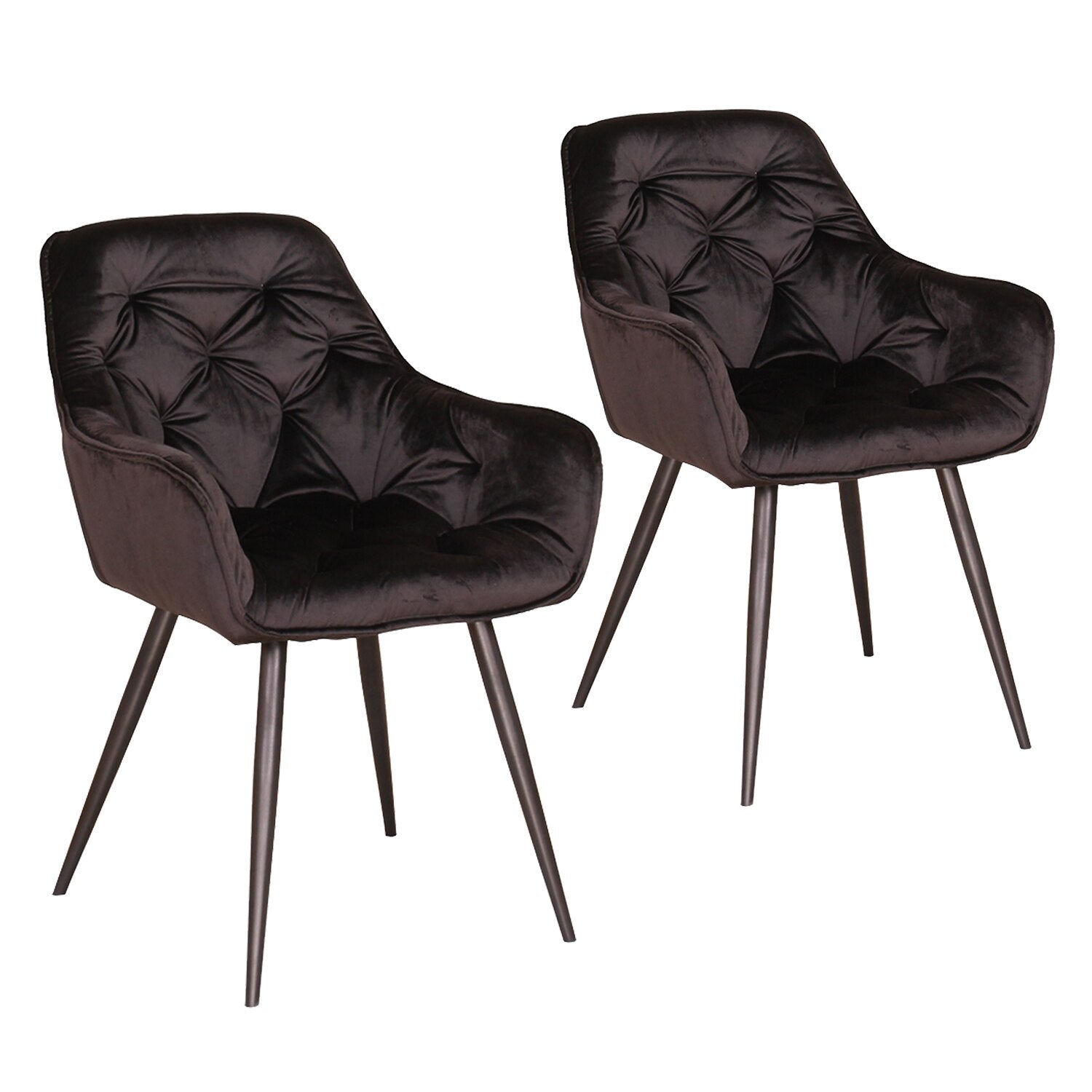 fluwelen eetkamerstoelen - zwarte metalen poten - 2 stuks