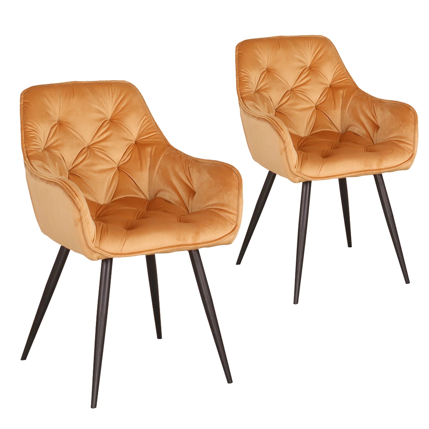 Voeg stijl en comfort toe aan je eetkamer met deze set van 2 kleurrijke fluwelen eetkamerstoelen. Deze stoelen zijn prachtig gestoffeerd en bieden een luxueuze uitstraling aan elke eettafel. De fluwelen bekleding voelt zacht aan en geeft een elegante touch aan je interieur.