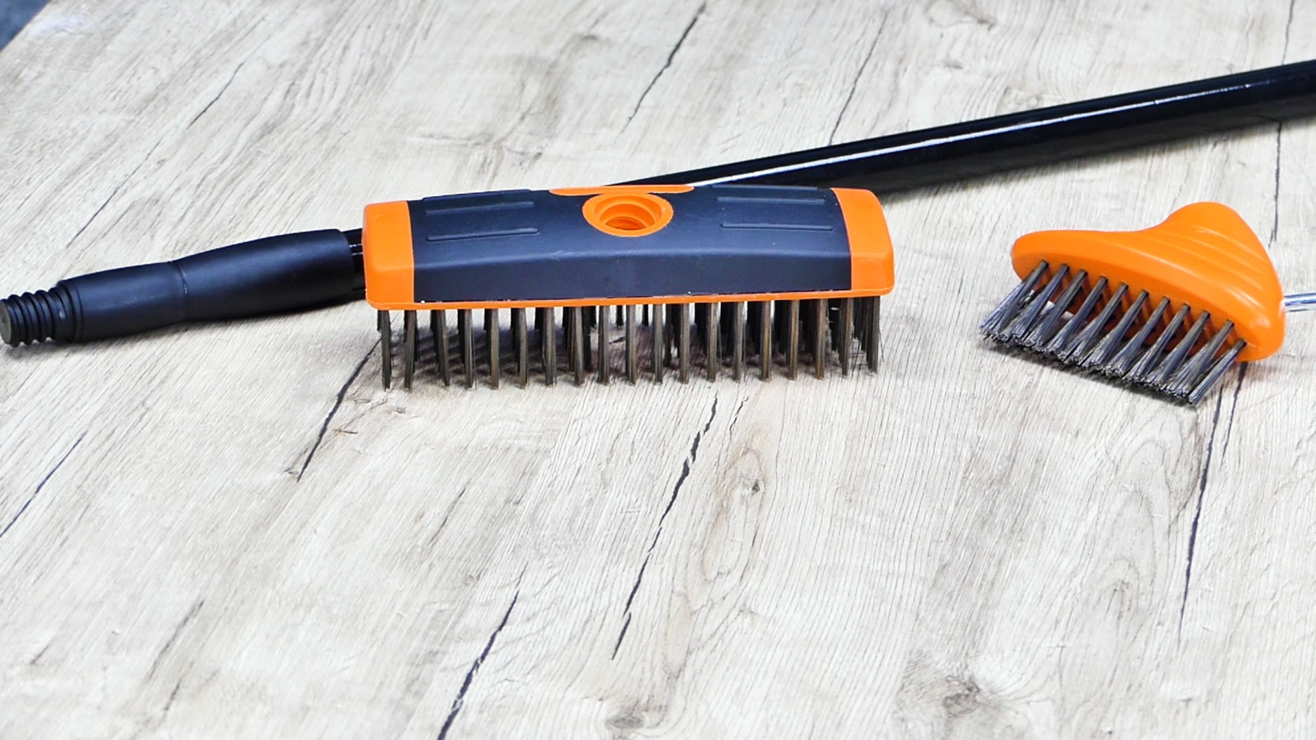 - Deze telescopische bezem met stalen borstelharen is zeer effectief en ideaal voor het reinigen van uw terras
