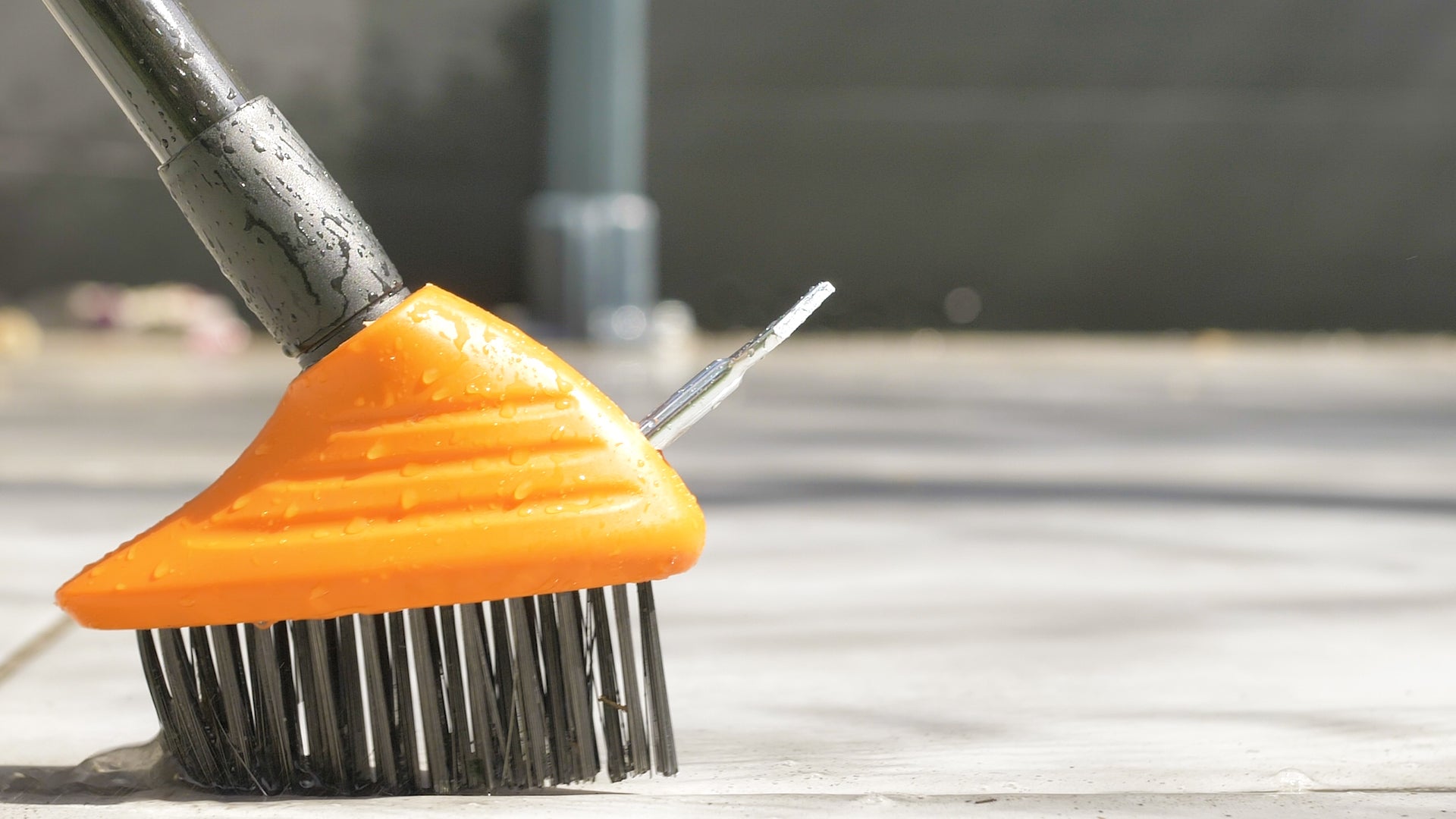 - De grote borstelkop werkt als een standaard bezem om vuil, bladeren en puin te verwijderen