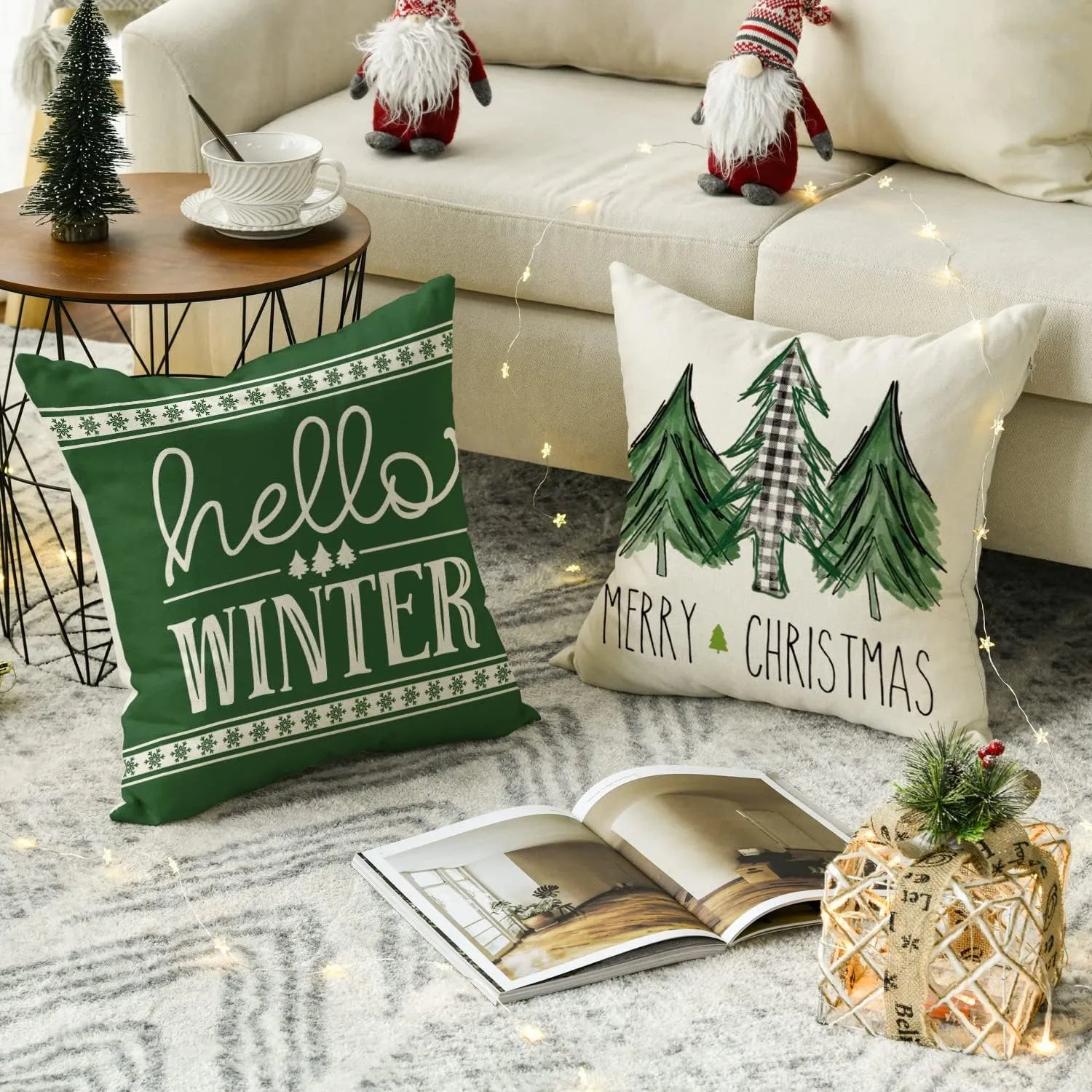 De hoes is gemaakt van hoogwaardig linnen/katoen materiaal en heeft een vierkante vorm van 50x50 cm. Hij is ontworpen voor zowel zitcomfort als decoratieve doeleinden. De voorkant is prachtig bedrukt met een vrolijke kerstboom en het motto van het seizoen.