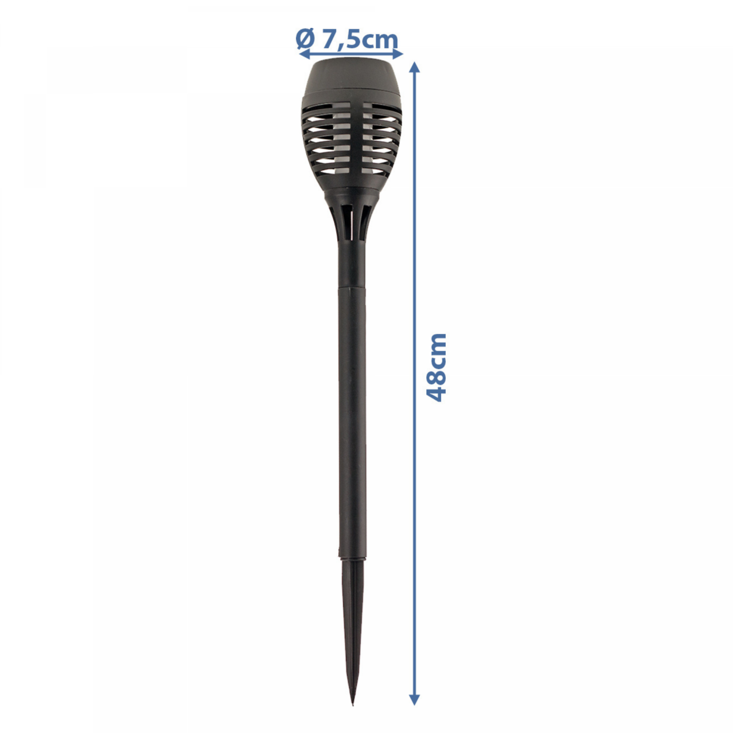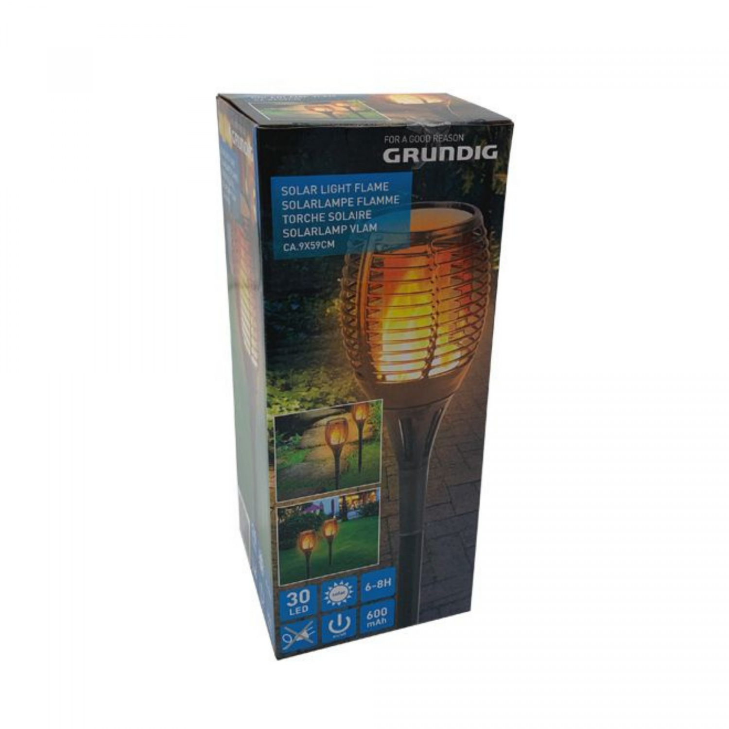 - In het donker garandeert een schemersensor dat de tuinlamp flikkert als een echte zaklamp.