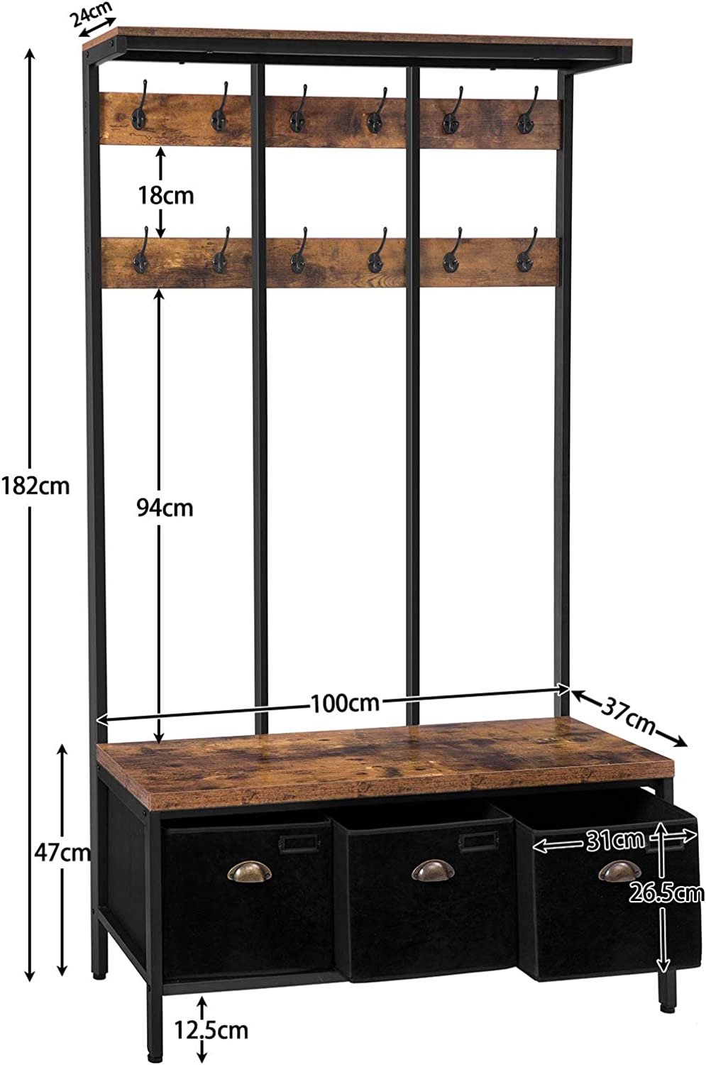 HOOBRO - Kapstok - 12 haken Kapstok met Bank en Schoenenopslag