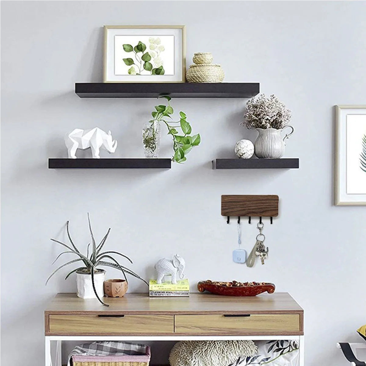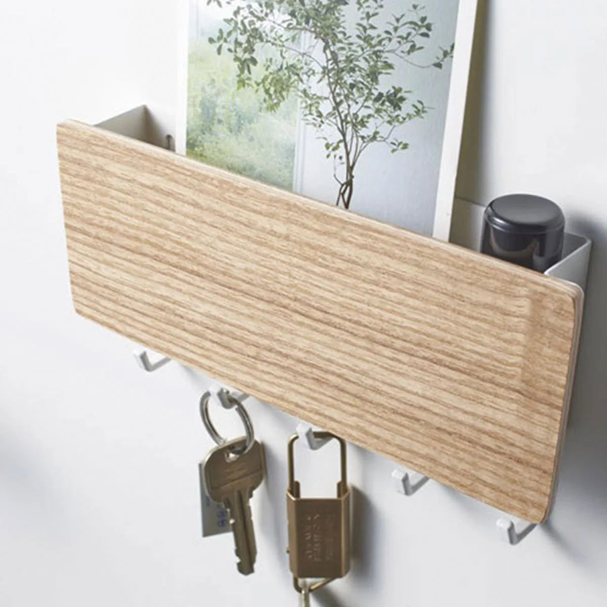 Met een enkele handige opbergdoos heb je je sleutels altijd binnen handbereik. De wandhaak is ontworpen voor eenvoudige bevestiging aan de deur, waardoor het een functioneel en ruimtebesparend element is in huis.