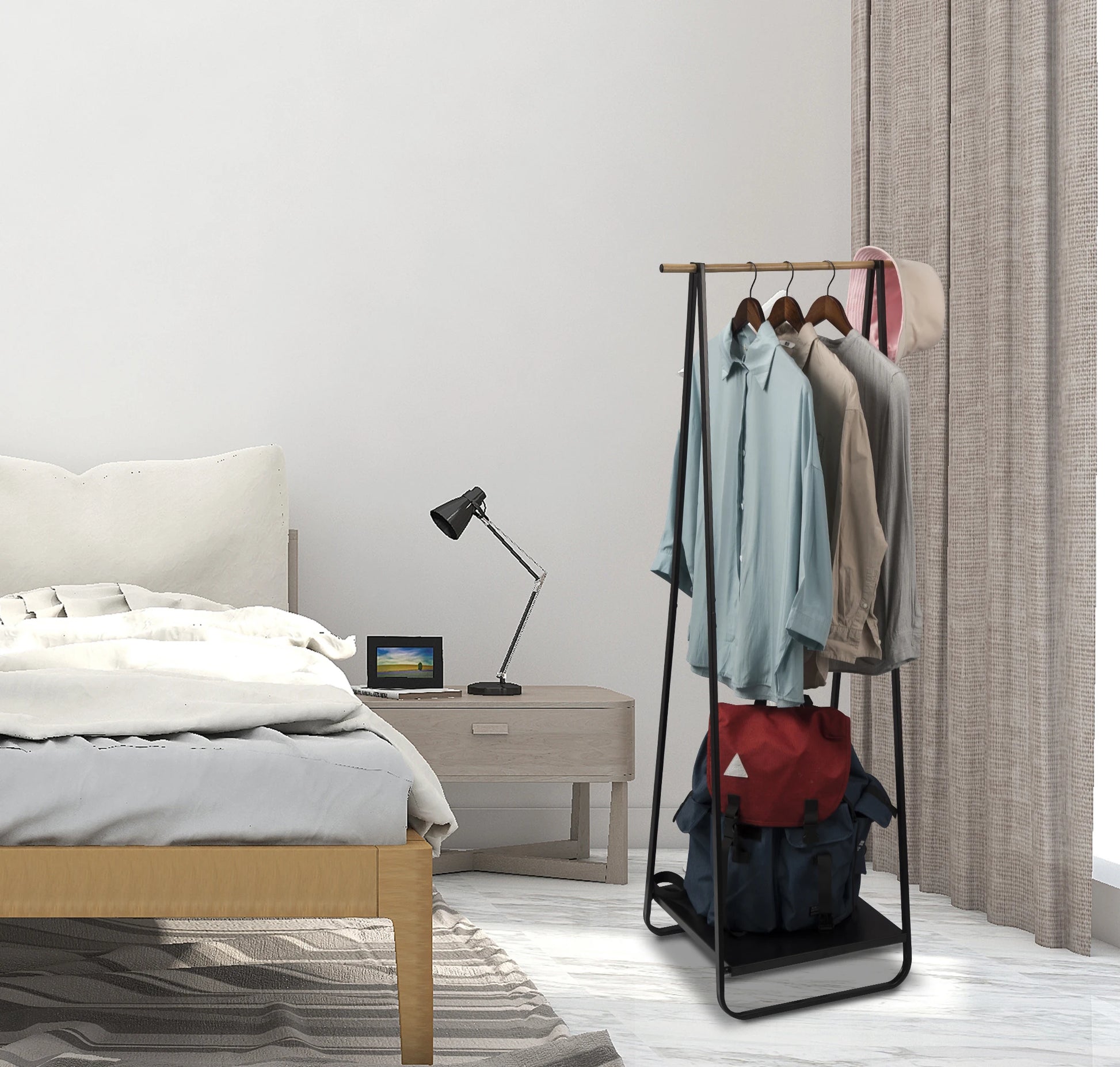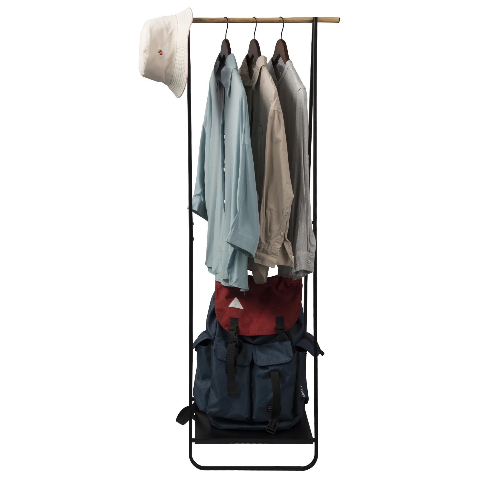 - Kleur: Zwart stalen buizen + eiken kledingrail