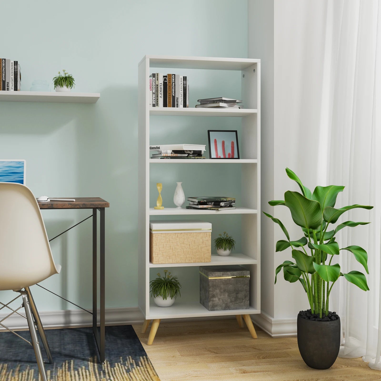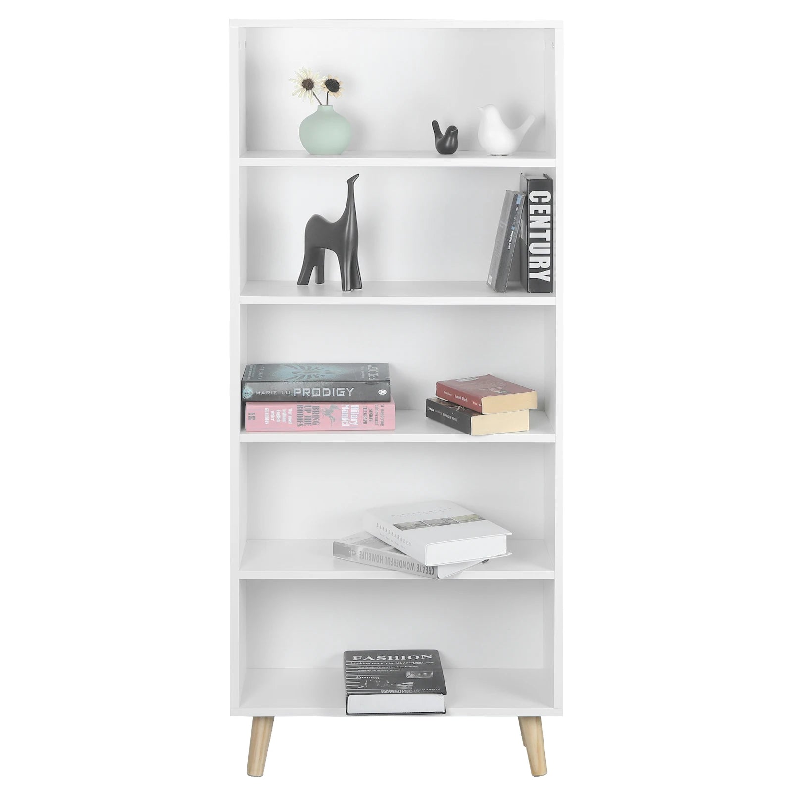 Deze kast is perfect voor het organiseren van boeken in de woonkamer, slaapkamer of kantoor. Met zijn vijf compartimenten biedt deze staande plank voldoende opbergruimte voor boeken, speelgoed en andere spullen. Gemaakt van hoogwaardig E1 Melamine board en massief hout, is deze kast duurzaam en stabiel. Het moderne ontwerp past perfect in elke kamer, terwijl de witte kleur een frisse uitstraling geeft. Creëer een opgeruimde en georganiseerde ruimte met deze praktische en stijlvolle kast.