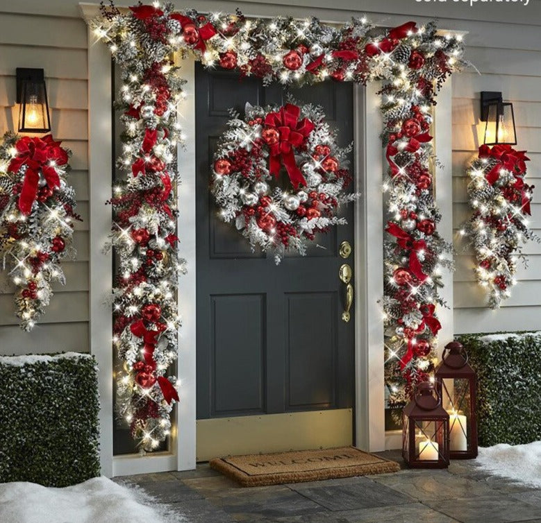 - Kerstkransen zijn gemaakt van hoogwaardig plastic en pluche stof, duurzaam en niet gemakkelijk te vervagen. Je kunt van deze prachtige, luxe krans genieten, je hoeft er alleen maar voor te zorgen dat hij beschermd is tegen wind en regen.