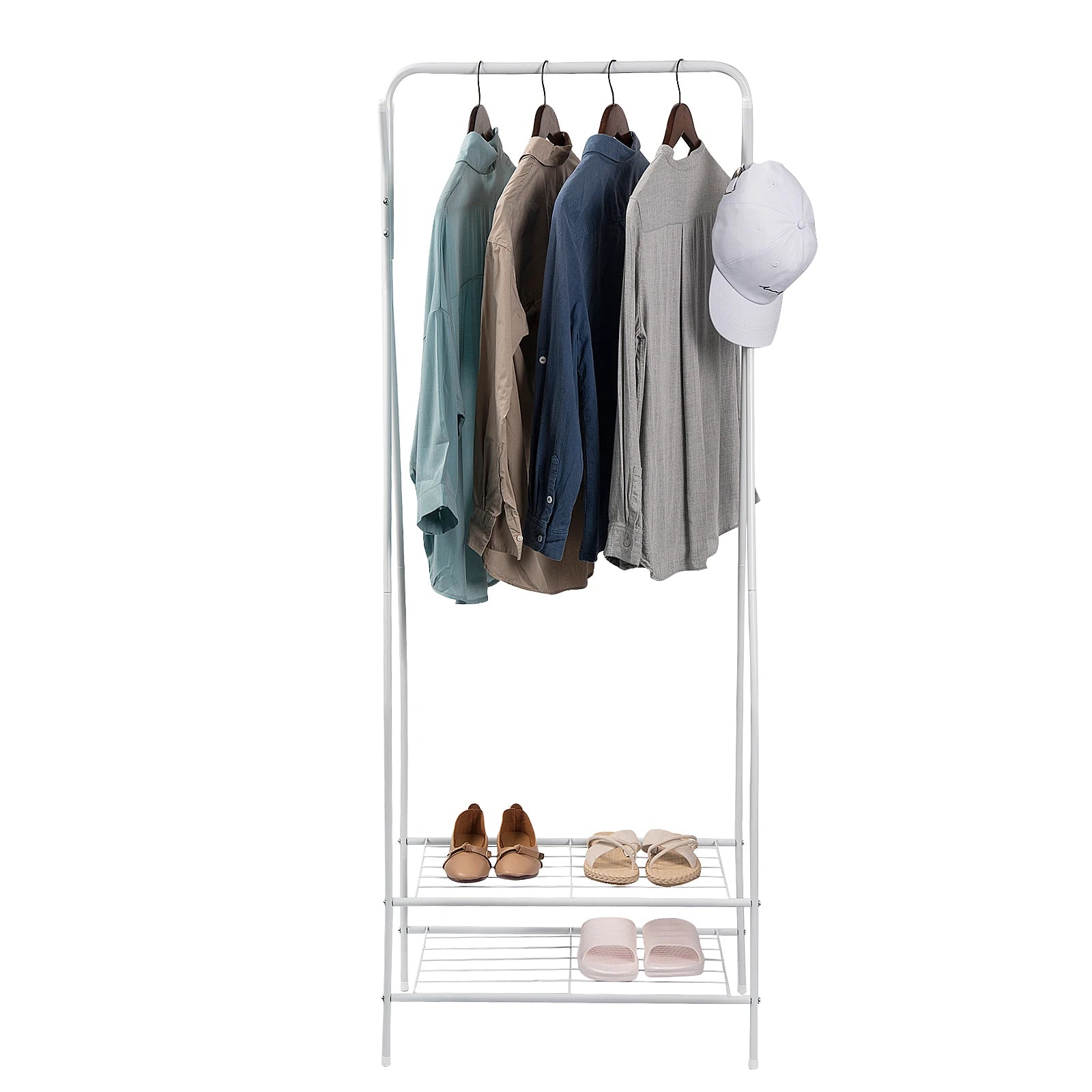 Optimaliseer de opslagruimte in jouw thuisdressingroom met dit praktische kledingrek . Het biedt niet alleen een stevige ijzeren kledinghanger voor jassen en kledingstukken, maar ook ruimte voor het opbergen van schoenen en accessoires op het schoenenrek. De vloeropslag en kledingkast zorgen voor een georganiseerde ruimte, terwijl de kledingdroogrekken handig zijn voor het luchten en drogen van kledingstukken. Dit kledingrek is de perfecte aanvulling voor elke dressingroom, waardoor je kleding netjes georganiseerd blijft en altijd klaar is voor gebruik.