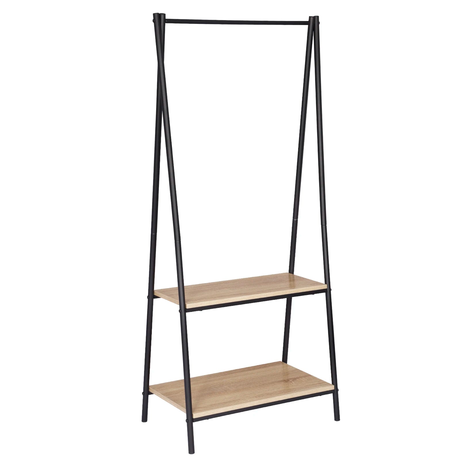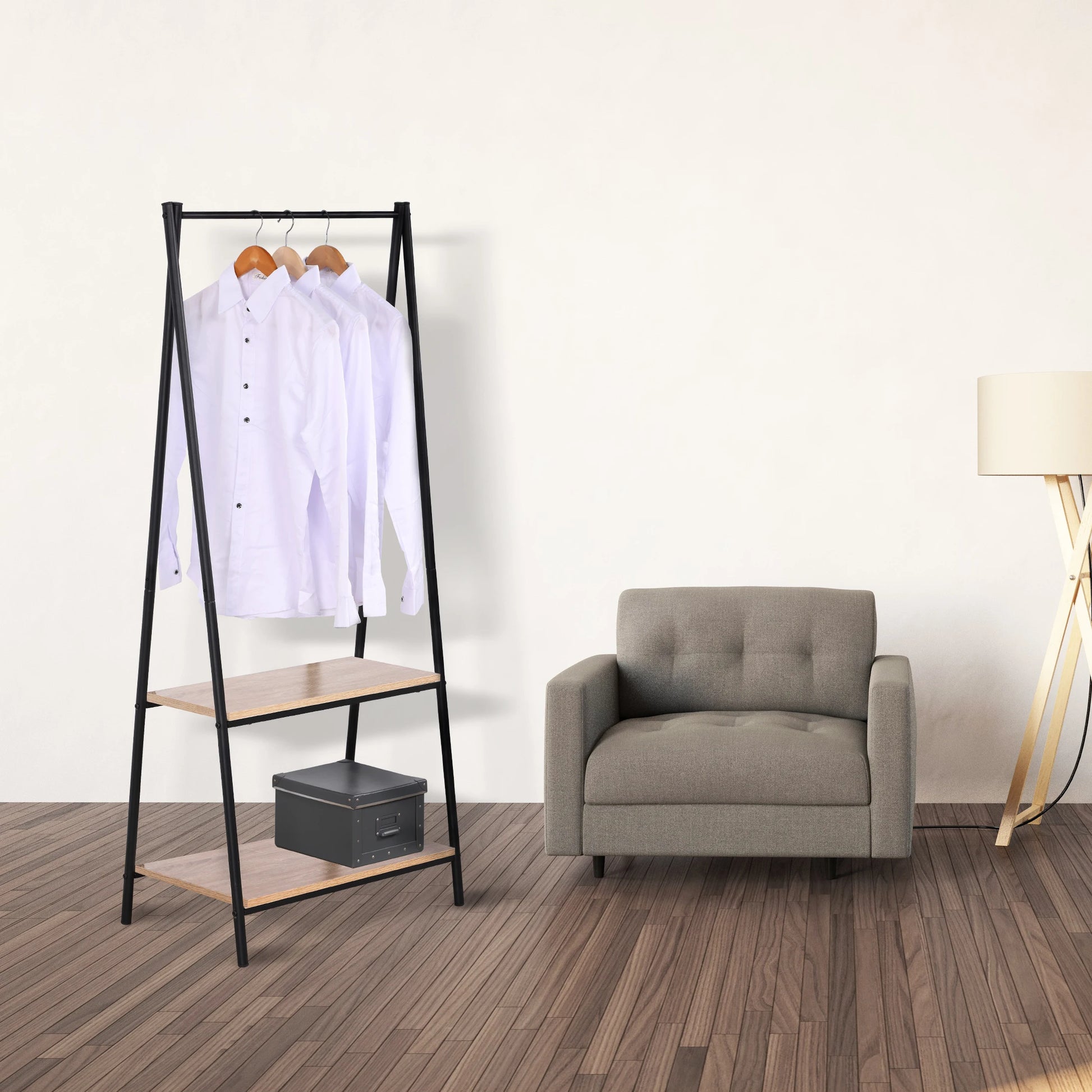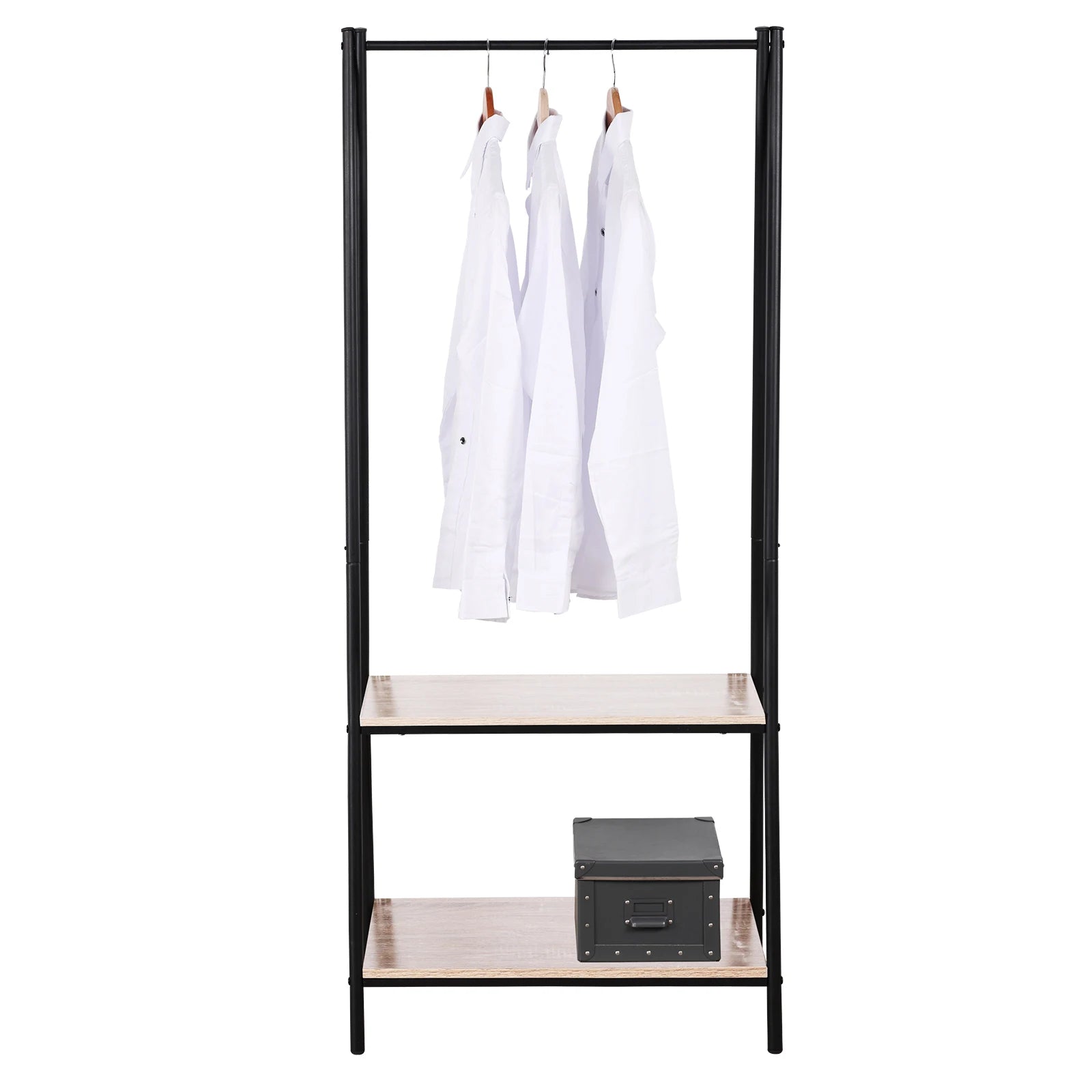 Kledingrek met Metalen kapstok staander en 2 lagen Houten schoenenrek