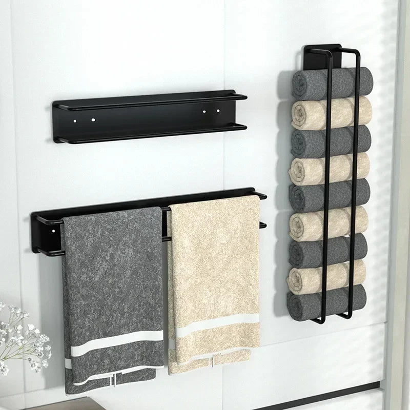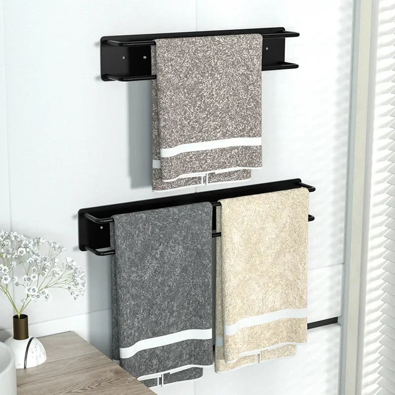 Breng stijl en functionaliteit naar je badkamer met deze moderne, simpele handdoekhouder. Deze zwarte multifunctionele opbergrek biedt een elegante oplossing voor het ophangen van handdoeken en het opbergen van toiletartikelen. Dankzij het punch-free ontwerp is installatie eenvoudig en worden muren niet beschadigd.