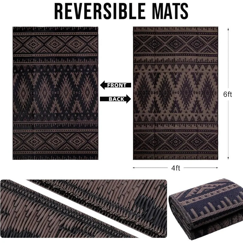 Breng sfeer en stijl naar je tuin, balkon of terras met dit waterdichte en omkeerbare buitenkleed in trendy boho design. Gemaakt van duurzaam plastic stro is dit vloerkleed lichtgewicht, weerbestendig en eenvoudig te reinigen – perfect voor elk seizoen.