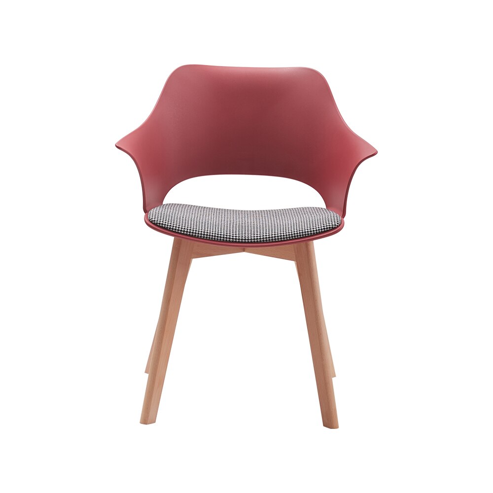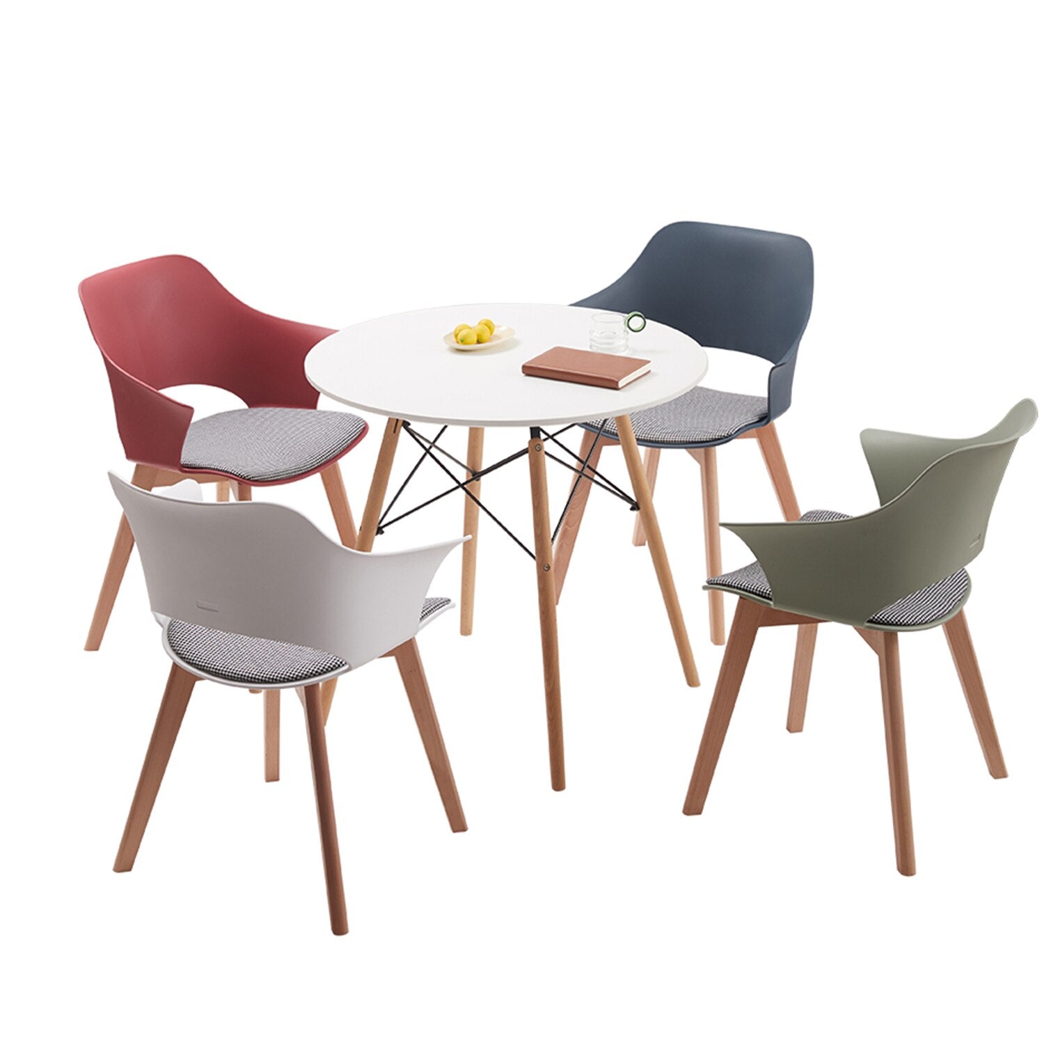 Elke stoel is voorzien van een comfortabele beklede zitting en een kussen in retrostijl, waardoor je kunt genieten van een heerlijk zitcomfort tijdens het dineren. De combinatie van de massief houten constructie en het stijlvolle design zorgt voor een uitnodigende en sfeervolle eetervaring.