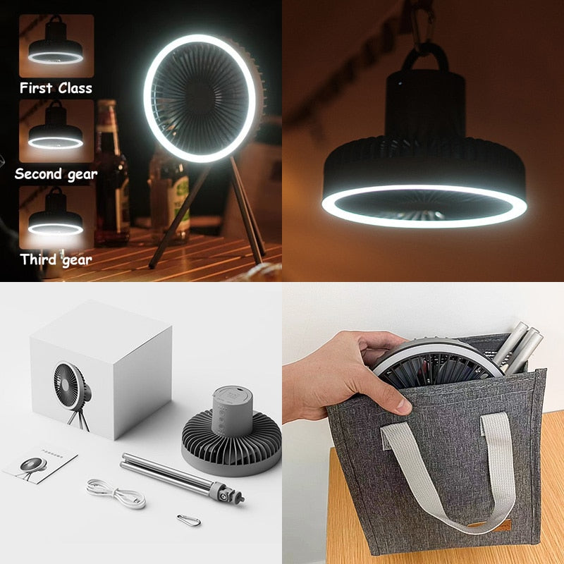De ventilator is uitgerust met een ingebouwde powerbankfunctie, zodat je jouw mobiele apparaten kunt opladen terwijl je geniet van de verkoelende bries. De Ledverlichting zorgt voor extra gemak en sfeer, vooral tijdens nachtelijke activiteiten in de buitenlucht.