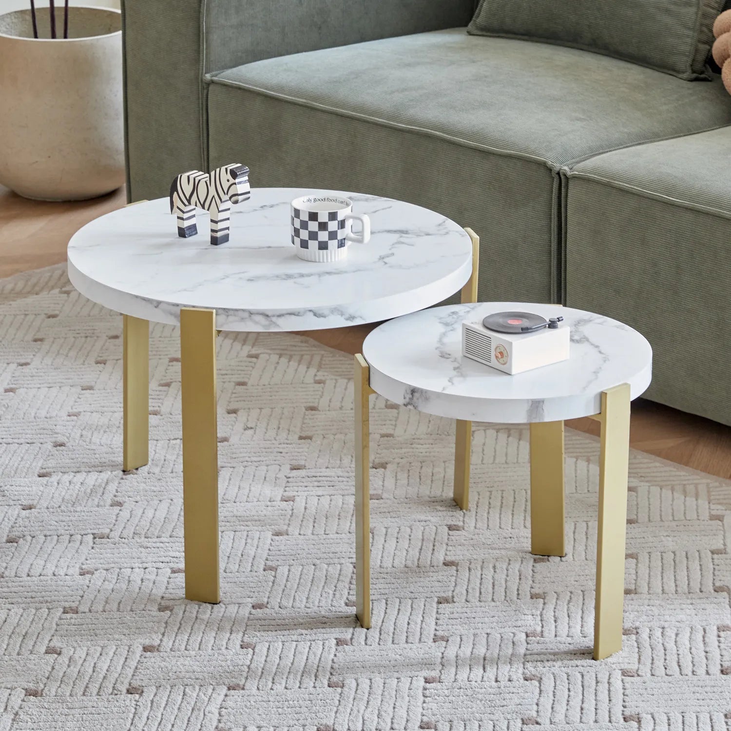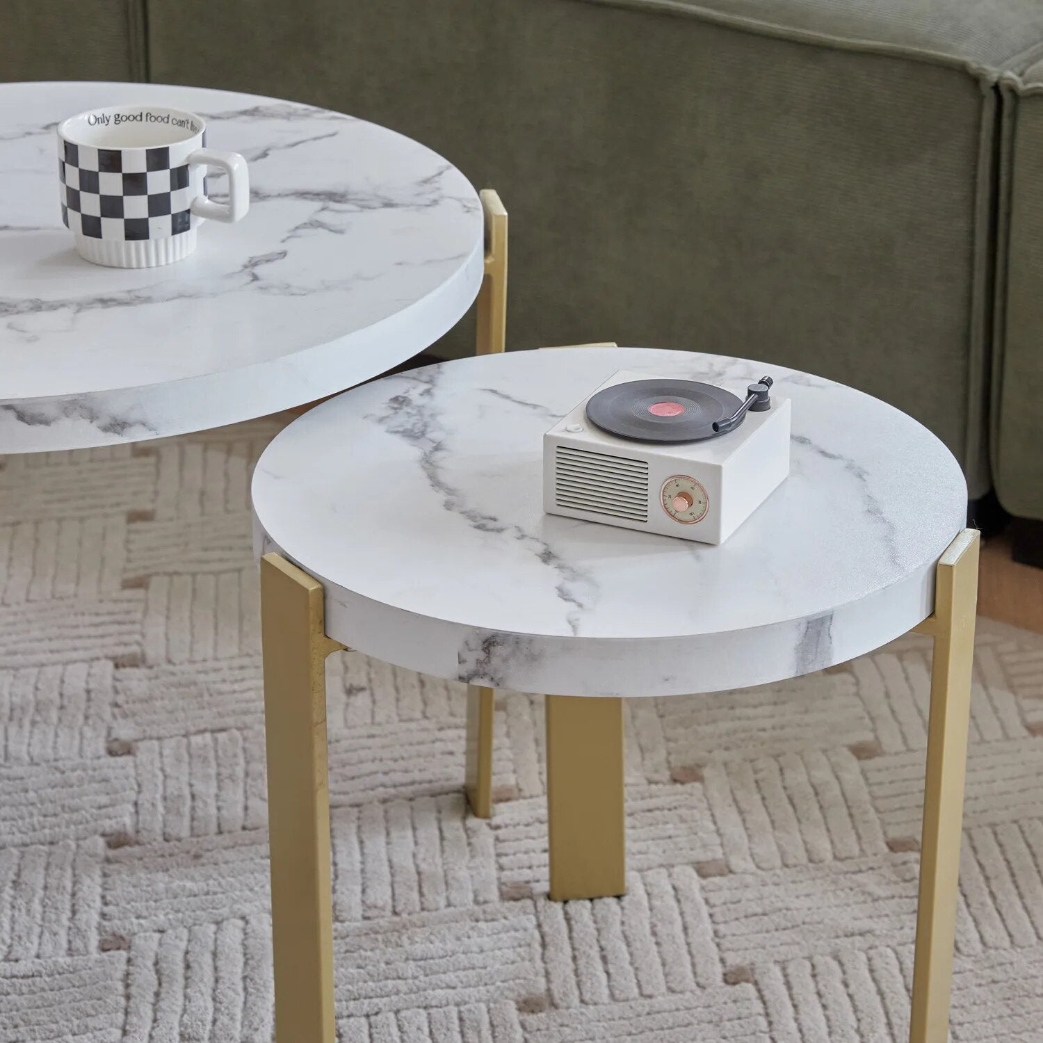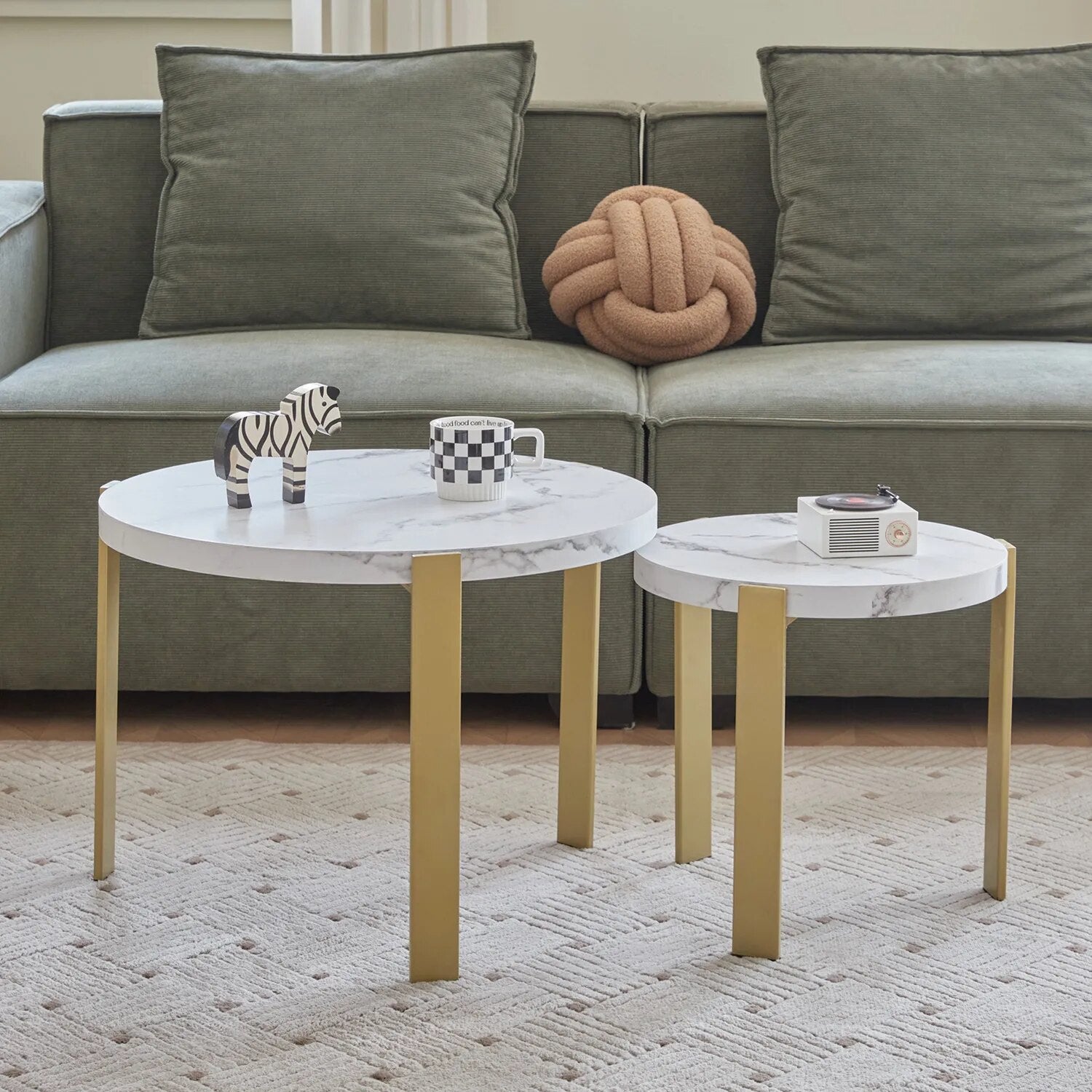 Of je ze uit elkaar schuift of bij elkaar zet, deze twee tafels van EGOONM maken zeker de juiste indruk in je huis. De set bestaat uit één grotere tafel en één kleinere, zodat ze perfect in elkaar passen, wat het ook ideaal maakt voor compacte opslag als dat ooit nodig is. De basis van elke tafel is gemaakt van staal om een stevige structuur te garanderen, met MDF tafelbladen die een gebalanceerd oppervlak bieden om te gebruiken. De tafelbladen zijn bedekt met een prachtig grijs marmer-effect dat de stijl en schoonheid jarenlang behoudt. Elk stuk is afgewerkt met Pads op de basis om je vloer te beschermen tegen vlekken.