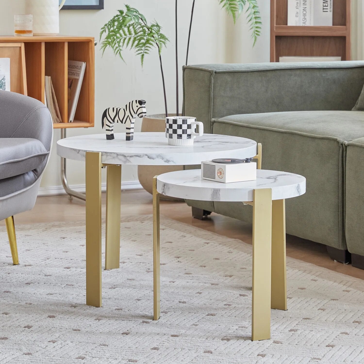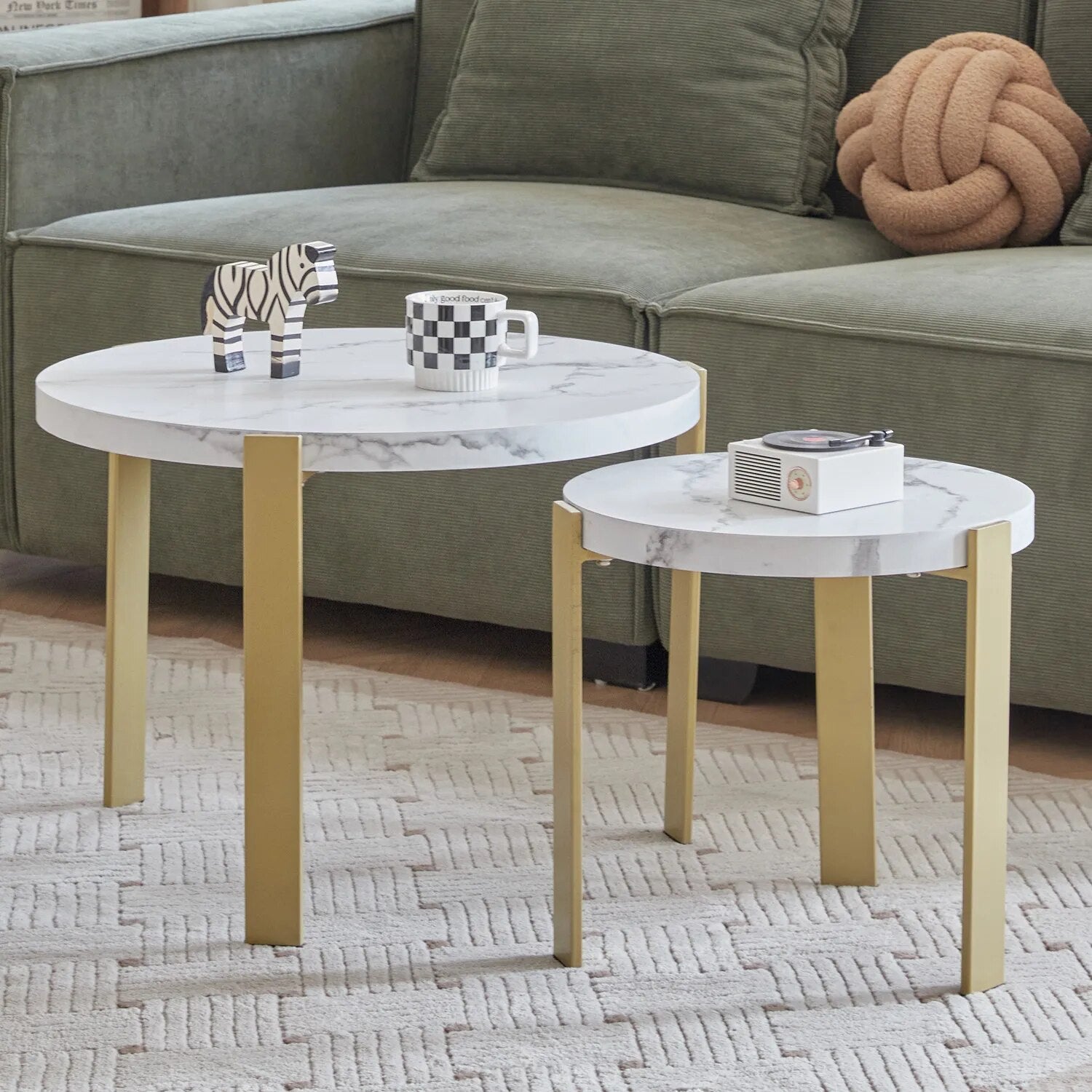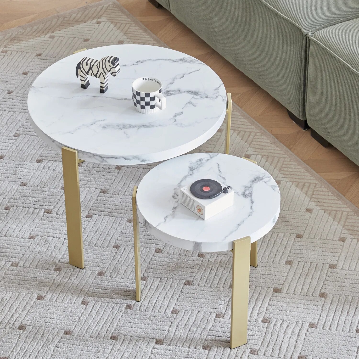 Of je ze uit elkaar schuift of bij elkaar zet, deze twee tafels van EGOONM maken zeker de juiste indruk in je huis. De set bestaat uit één grotere tafel en één kleinere, zodat ze perfect in elkaar passen, wat het ook ideaal maakt voor compacte opslag als dat ooit nodig is. De basis van elke tafel is gemaakt van staal om een stevige structuur te garanderen, met MDF tafelbladen die een gebalanceerd oppervlak bieden om te gebruiken. De tafelbladen zijn bedekt met een prachtig grijs marmer-effect dat de stijl en schoonheid jarenlang behoudt. Elk stuk is afgewerkt met Pads op de basis om je vloer te beschermen tegen vlekken.