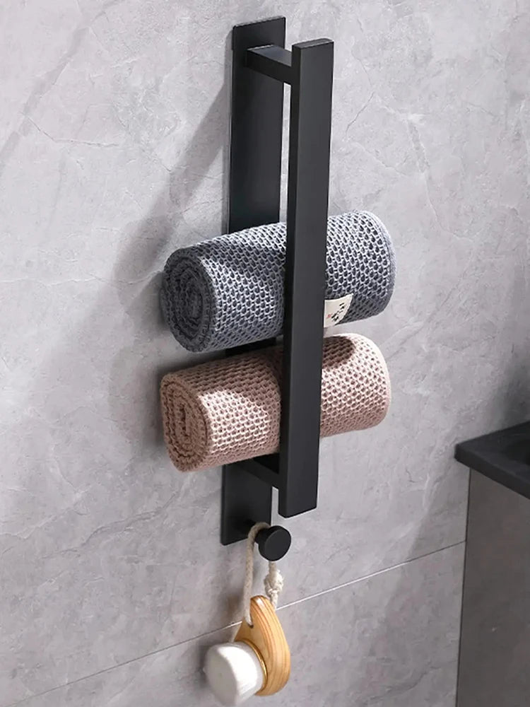 Deze handdoekhouder combineert functionaliteit en design en is een praktische oplossing voor elke moderne badkamer.