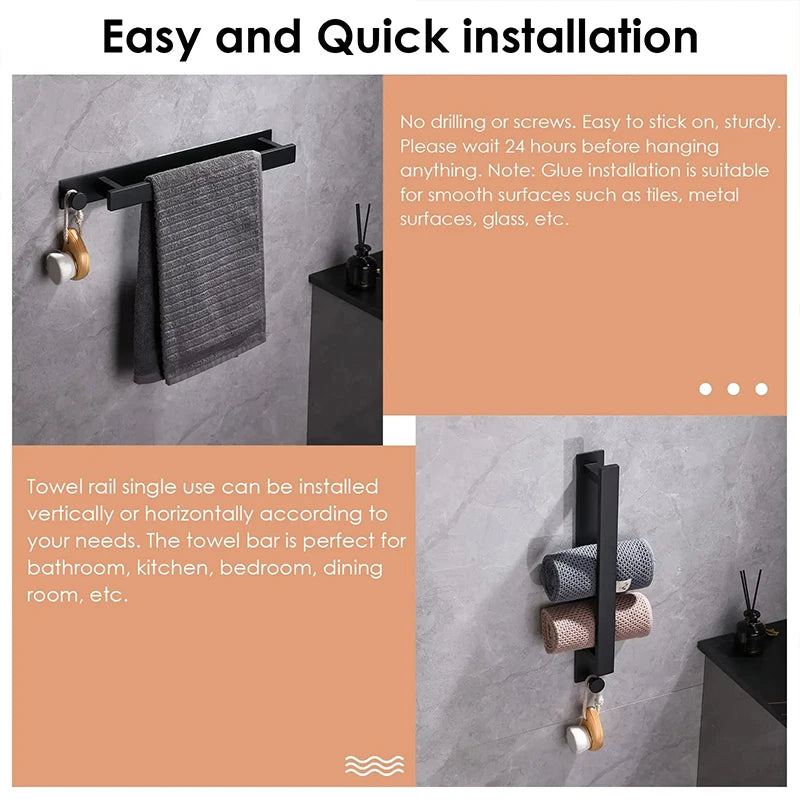 Deze stijlvolle en duurzame handdoekhouder van roestvrij staal is perfect voor het netjes ophangen van handdoeken in de badkamer of het gastentoilet. Dankzij het innovatieve ontwerp kan de houder eenvoudig zonder boren worden geïnstalleerd, waardoor schade aan muren wordt voorkomen.