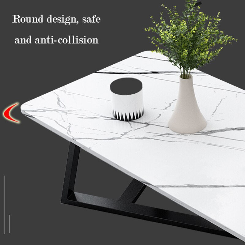 Deze set van moderne salontafels is perfect voor de woonkamer. De tafels hebben een eigentijds ontwerp met kleine marmeren bladen en metalen poten, wat zorgt voor een stijlvolle uitstraling. De eettafel in de set is smal en neemt weinig ruimte in beslag, waardoor het ideaal is voor kleinere ruimtes.