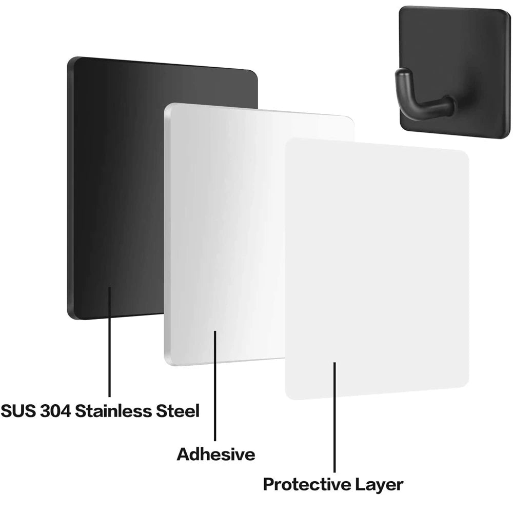 De haken zijn eenvoudig te monteren met de zelfklevende achterkant, waardoor boren en schroeven overbodig zijn. Het roestvrijstalen materiaal zorgt voor duurzaamheid en waterbestendigheid, waardoor ze geschikt zijn voor vochtige omgevingen zoals badkamers.