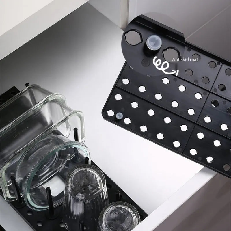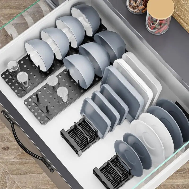 Met het Verstelbaar Serviesdroogrek breng je slimme organisatie naar je keuken. Dit veelzijdige rek, gemaakt van duurzaam ABS-materiaal, is ideaal voor het drogen van servies en het opbergen van servies en komdeksels. Perfect voor het organiseren van je keukenruimte.
