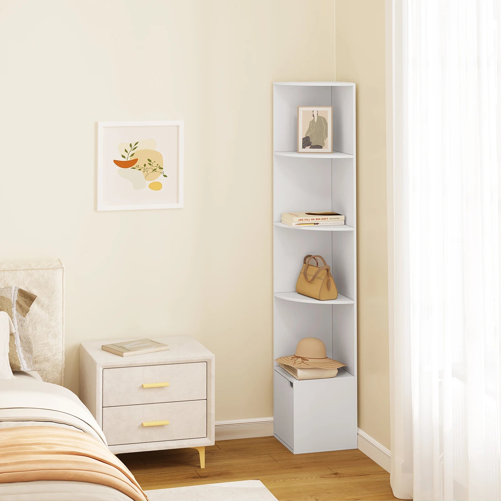 Voeg een vleugje elegantie en functionaliteit toe aan uw interieur met deze staande boekenkast. Met 5 ruime planken en een handig kastje met deur biedt deze boekenkast voldoende opbergruimte voor al uw boeken, decoratieve items en andere benodigdheden. Het witte ontwerp past perfect bij elke inrichting, terwijl het compacte formaat ideaal is voor gebruik in studiekamers, slaapkamers, woonkamers of kantoren. Houd uw ruimte georganiseerd en stijlvol met deze veelzijdige boekenkast.