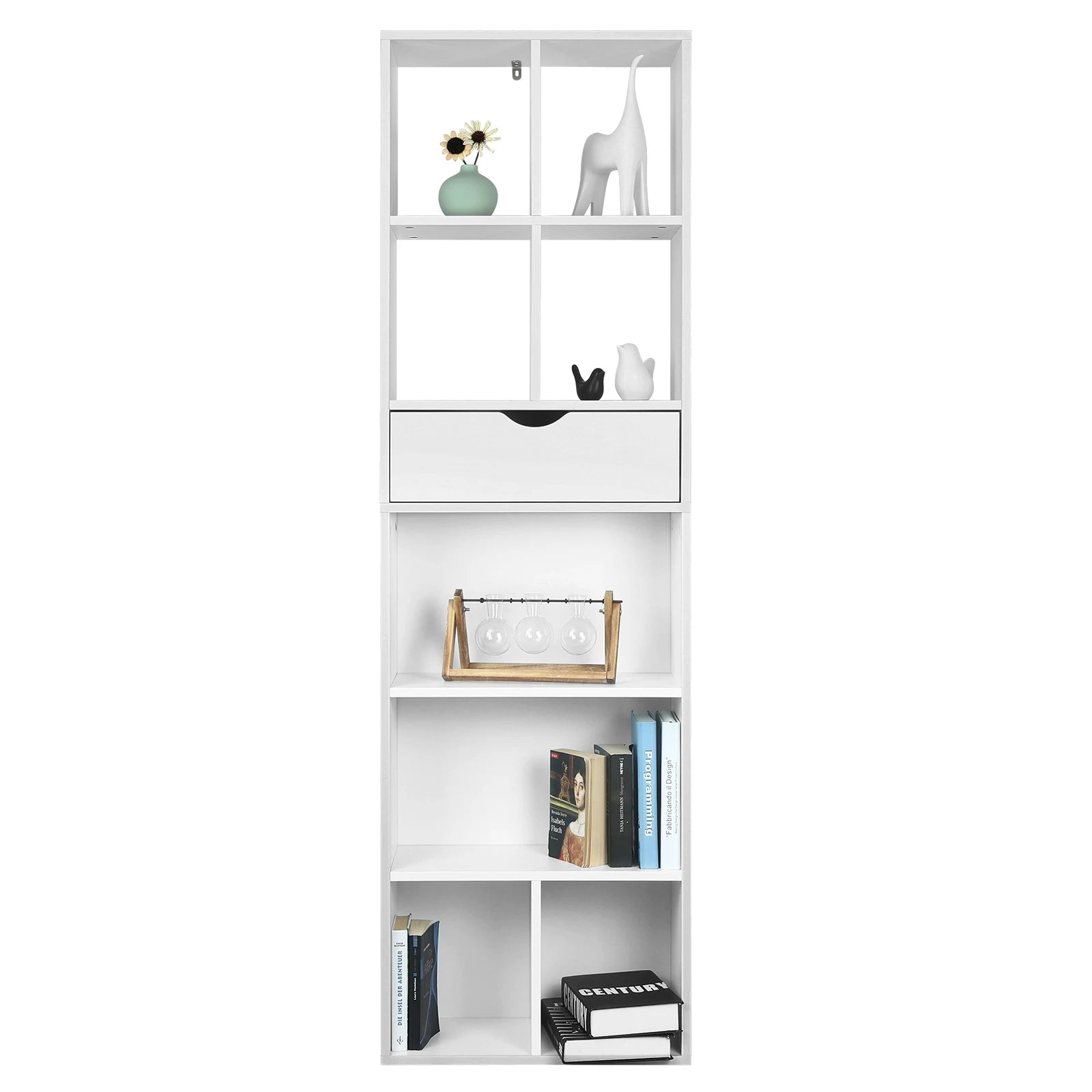 Voeg functionaliteit en stijl toe aan uw woonruimte met deze Vrijstaande Boekenkast met Lade. Deze veelzijdige boekenplank dient niet alleen als opbergrek voor uw favoriete boeken en decoratieve items, maar kan ook dienen als een handige roomdivider om uw ruimte te structureren. Met de toegevoegde lade biedt dit meubelstuk extra opbergruimte voor kleinere items. Of het nu in de woonkamer of slaapkamer is, deze vrijstaande boekenplank organizer zal een functionele en stijlvolle toevoeging zijn aan uw huis.