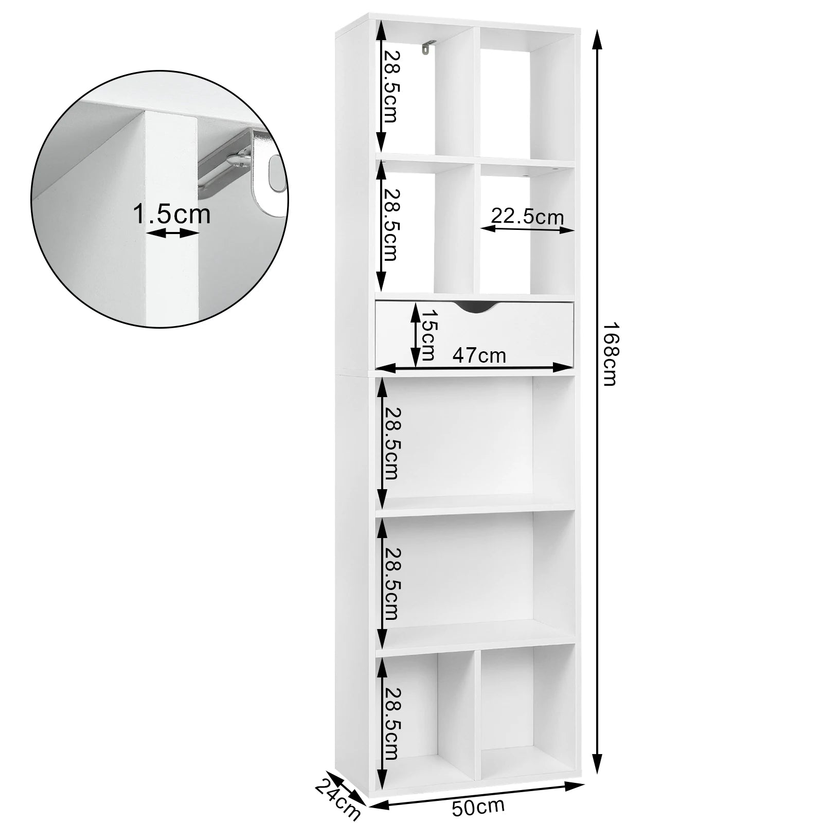 - Buitenafmeting: 50 * 24 * 168cm (L * B * H)