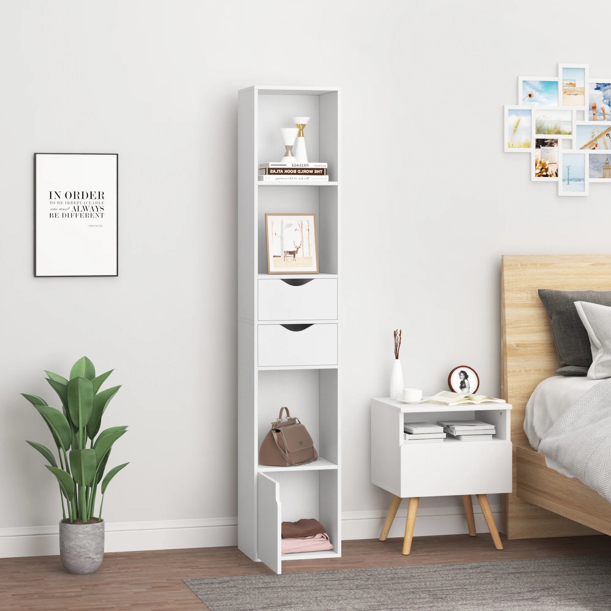 Voeg een vleugje elegantie en functionaliteit toe aan jouw woonkamer of kantoor met deze prachtige staande boekenplank. Met handige laden en een deur biedt deze boekenkast voldoende ruimte om jouw favoriete boeken, decoratieve items en andere benodigdheden op te bergen en tentoon te stellen. De compacte afmetingen maken het ideaal voor kleine ruimtes, terwijl het moderne ontwerp een stijlvolle toevoeging vormt aan elke kamer. Of je het nu gebruikt voor thuis of op kantoor, deze opbergplanken organisator zal jouw ruimte georganiseerd en netjes houden, terwijl het tegelijkertijd bijdraagt aan de esthetiek van jouw interieur.