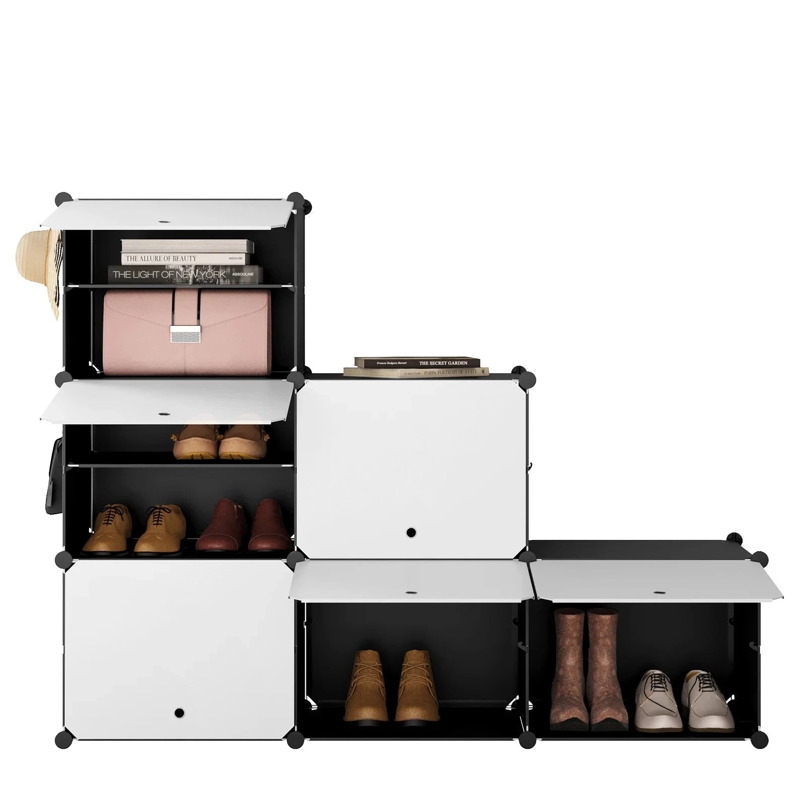 Organiseer jouw schoenen op een nette en georganiseerde manier met deze Schoenenkast. Met zes handige compartimenten en deuren biedt deze schoenen-opbergdoos voldoende ruimte om jouw schoenen veilig en stofvrij te bewaren. Het modulaire plastic ontwerp maakt het eenvoudig om de kast aan te passen aan de beschikbare ruimte in jouw gang, woonkamer of slaapkamer. Deze schoenenrekplank voegt niet alleen functionaliteit toe aan jouw huis, maar ook een vleugje moderne stijl. Houd jouw schoenen georganiseerd en binnen handbereik met deze praktische en veelzijdige schoenenkast.