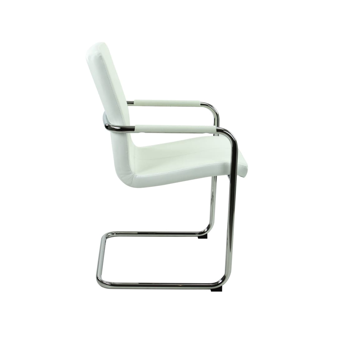 Met de S serie stoel Comfort zit je prettig en geef je de woonruimte tegelijkertijd een stijlvolle Touch. Verkrijgbaar in zwart of wit leer, met verchroomd sledeframe. Bestel deze vergaderstoelen nu eenvoudig online. hij wordt geheel gemonteerd geleverd! Deze stoel is niet stapelbaar. Stoffering in Vegan leer.