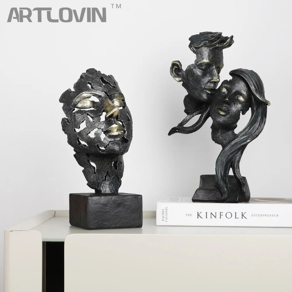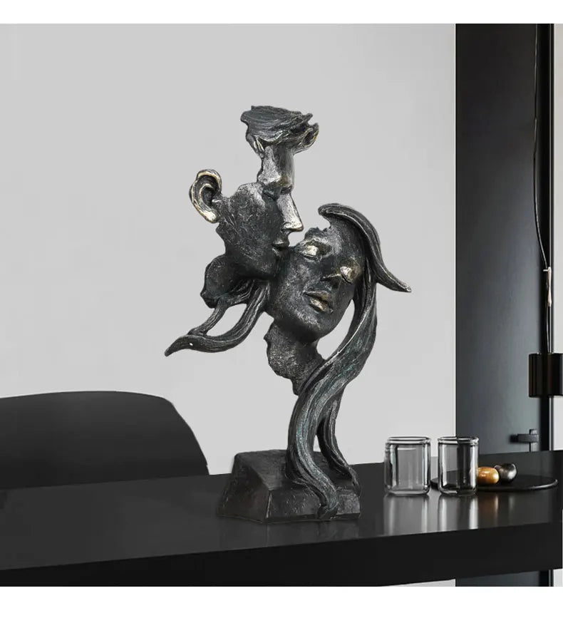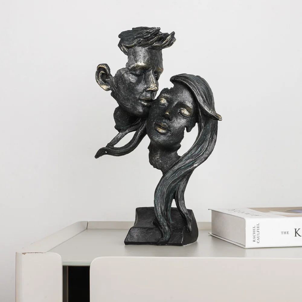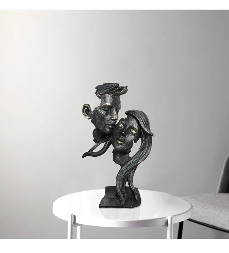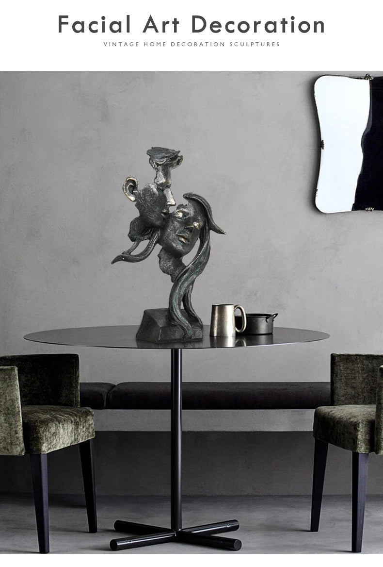Voeg een vleugje elegantie en mysterie toe aan je interieur met deze prachtige vintage gezichtsbeeld-sculptuur. Deze unieke decoratie, uitgevoerd in een stijlvolle combinatie van zwart en goud, stelt een artistiek kusmasker voor en is perfect voor het decoreren van elke ruimte, van moderne woningen tot klassieke villa's of knusse cottages. Het retro design straalt verfijning uit en fungeert als een echte blikvanger in je woonkamer, slaapkamer of entree.
