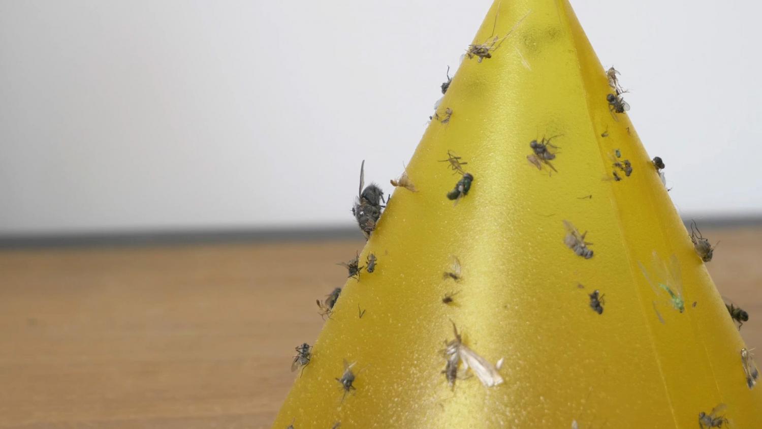ideaal voor vliegen, muggen, en kakkerlakken, ze blijven vastzitten aan de gelijmde kegel.